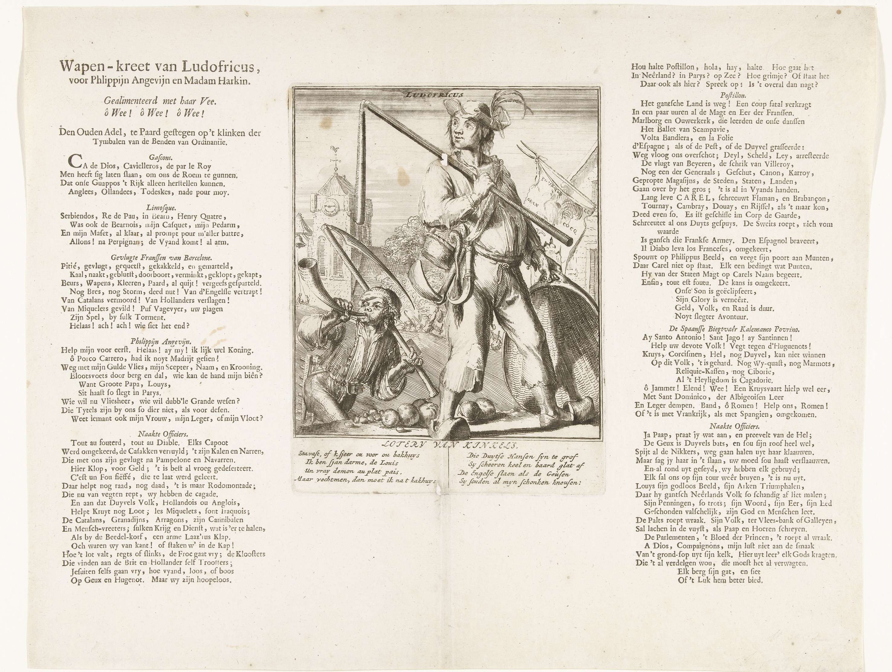 Spotprent op de Franse boerensoldaten, 1706