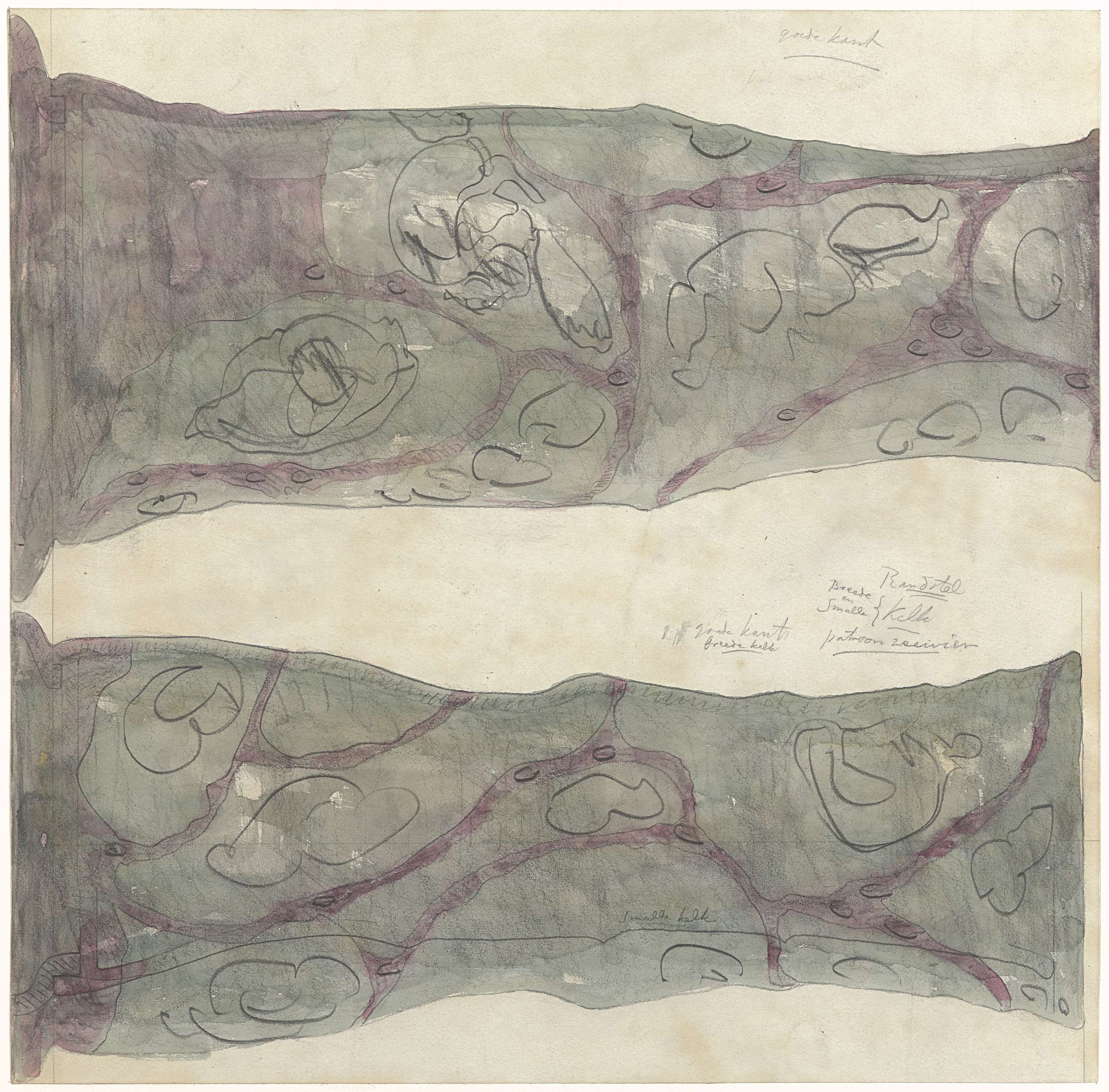 Fragment van een ontwerp voor een schotel van aardew...