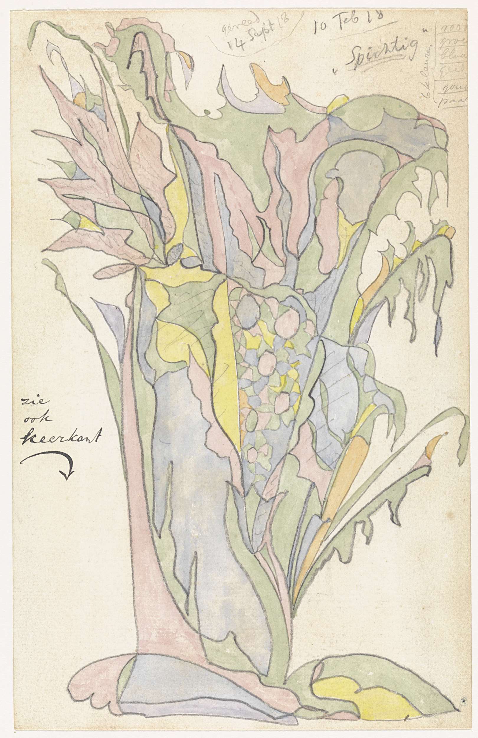 Ontwerp voor aardewerkdecoratie: granaatbloem, pioen...