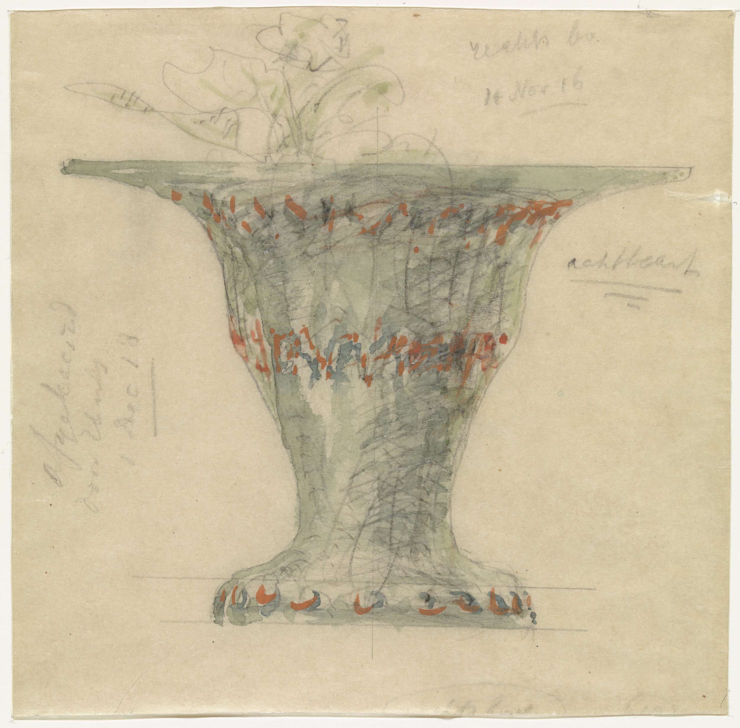 Ontwerp voor aardewerkdecoratie van schotel Wandelin...