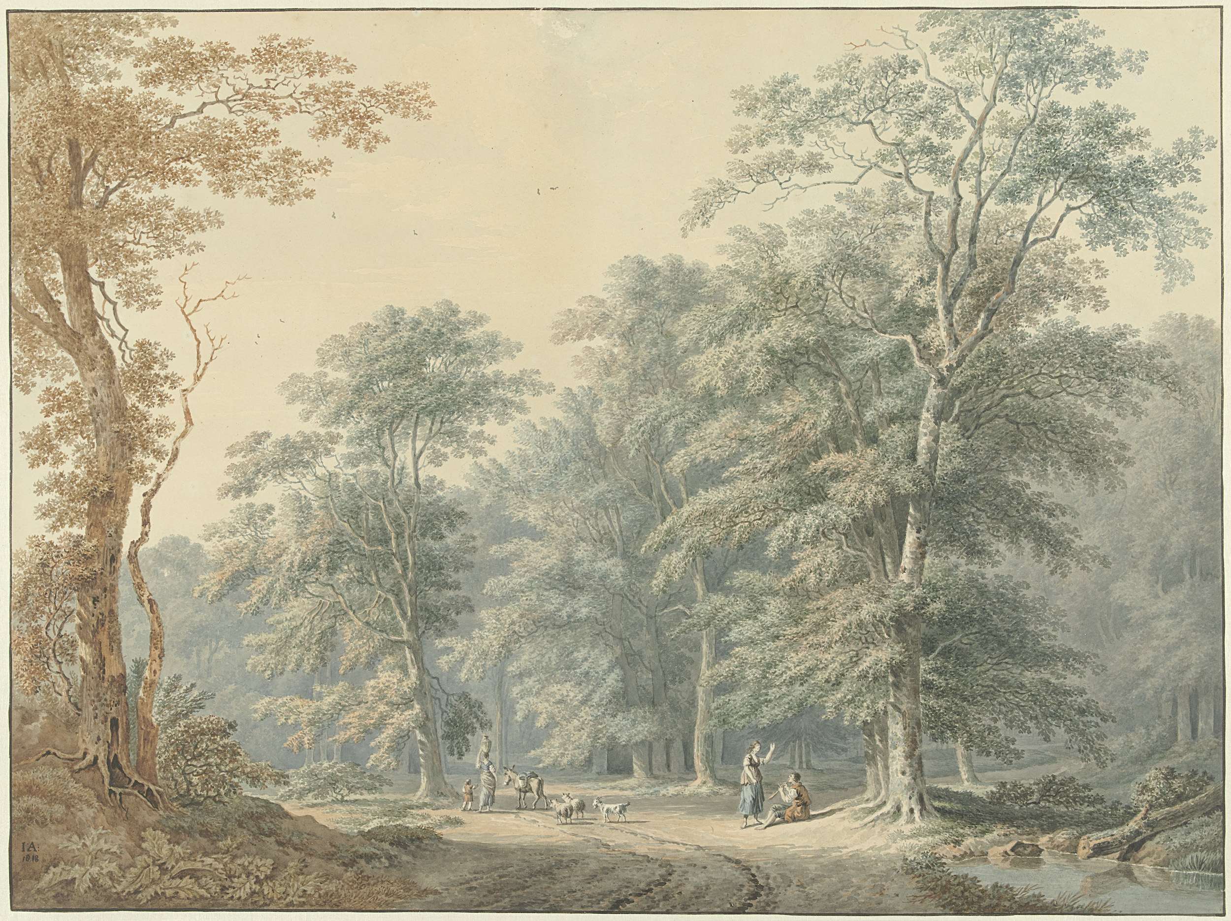 Bosgezicht met klassicistische stoffage