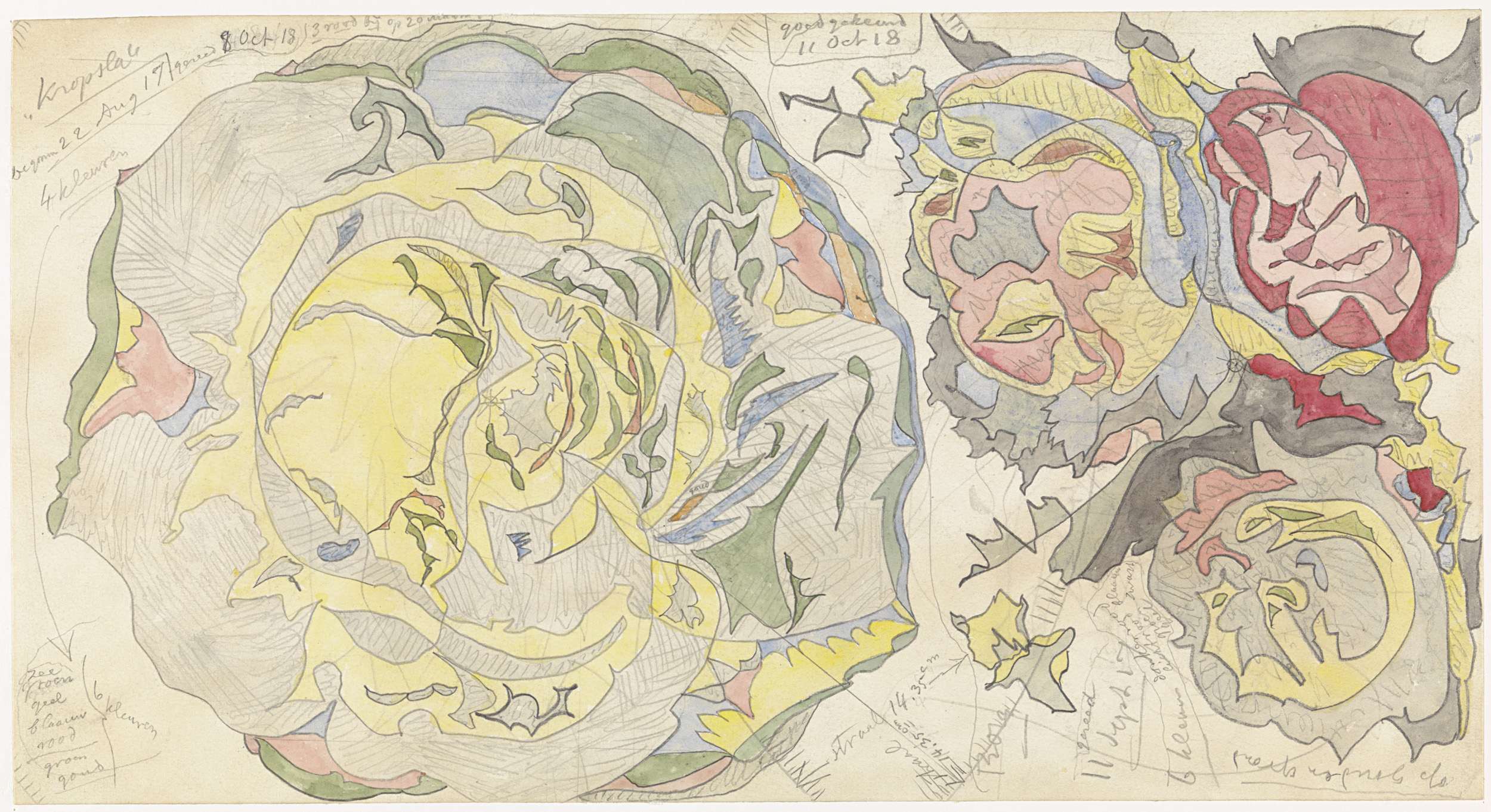 Ontwerp voor aardewerk decoratie: bloemkool en savoo...