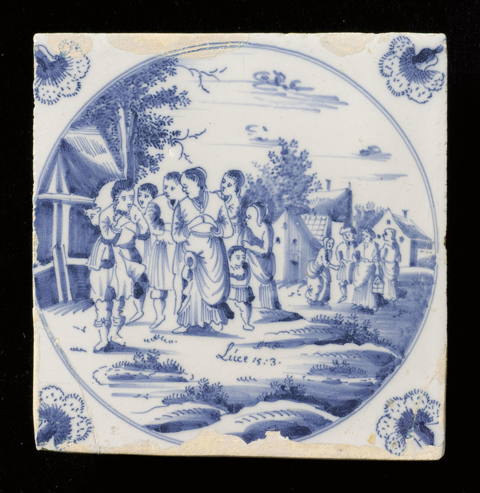tegel van aardewerk met tinglazuur, voorstellende: h...