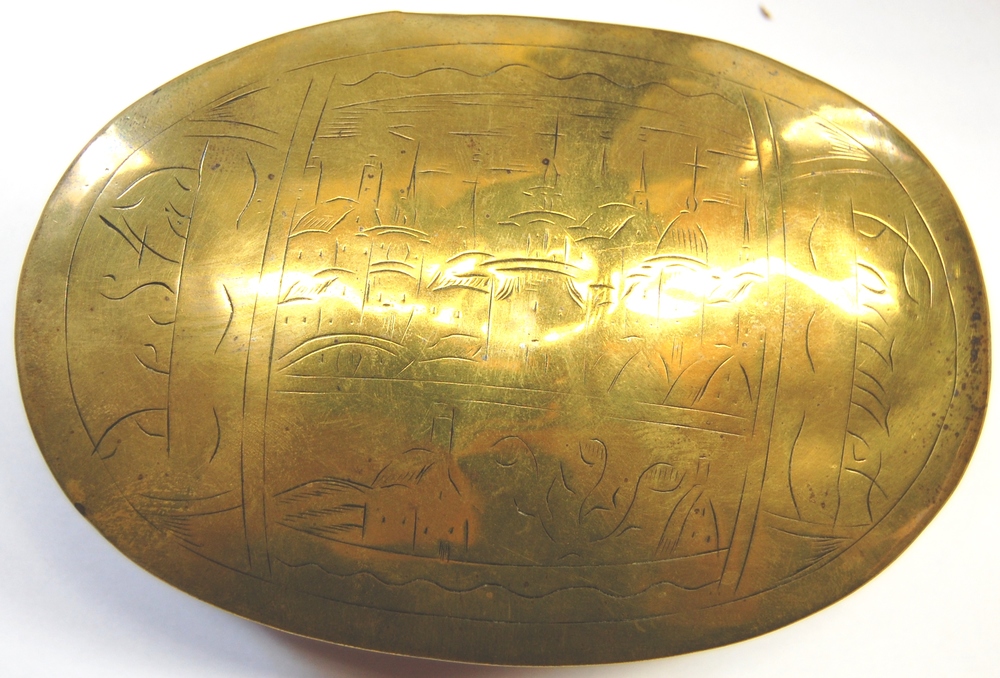 tabaksdoos. Ovaal messing model met op het deksel te...