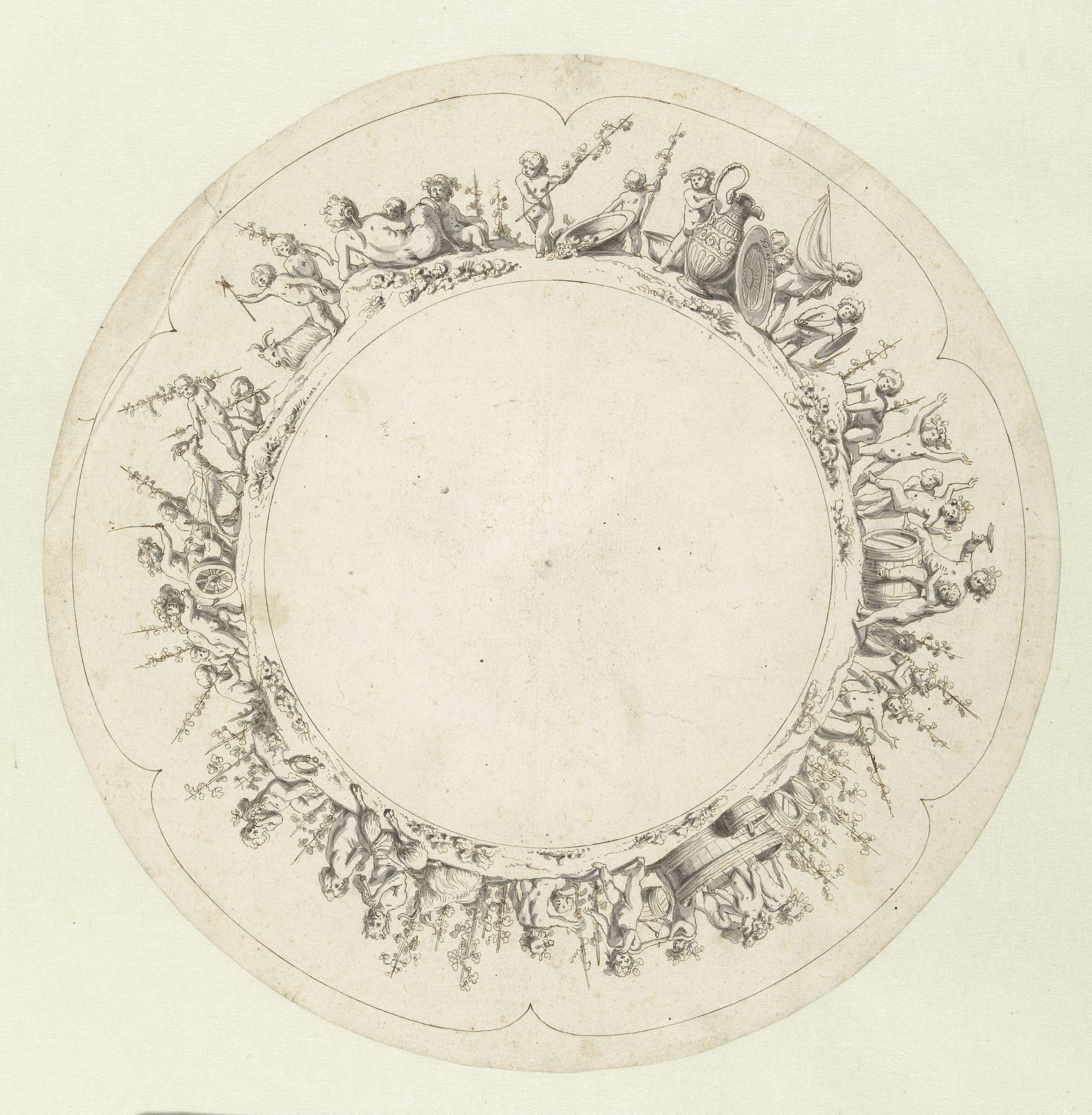 Ontwerp voor een rond plafondstuk met de vier windst...
