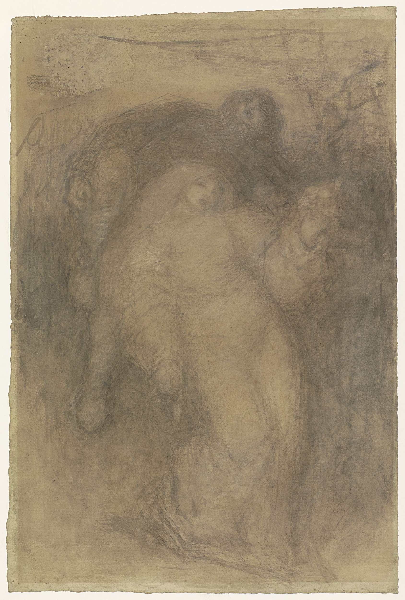 Zittend vrouwelijk naakt, op de rug gezien