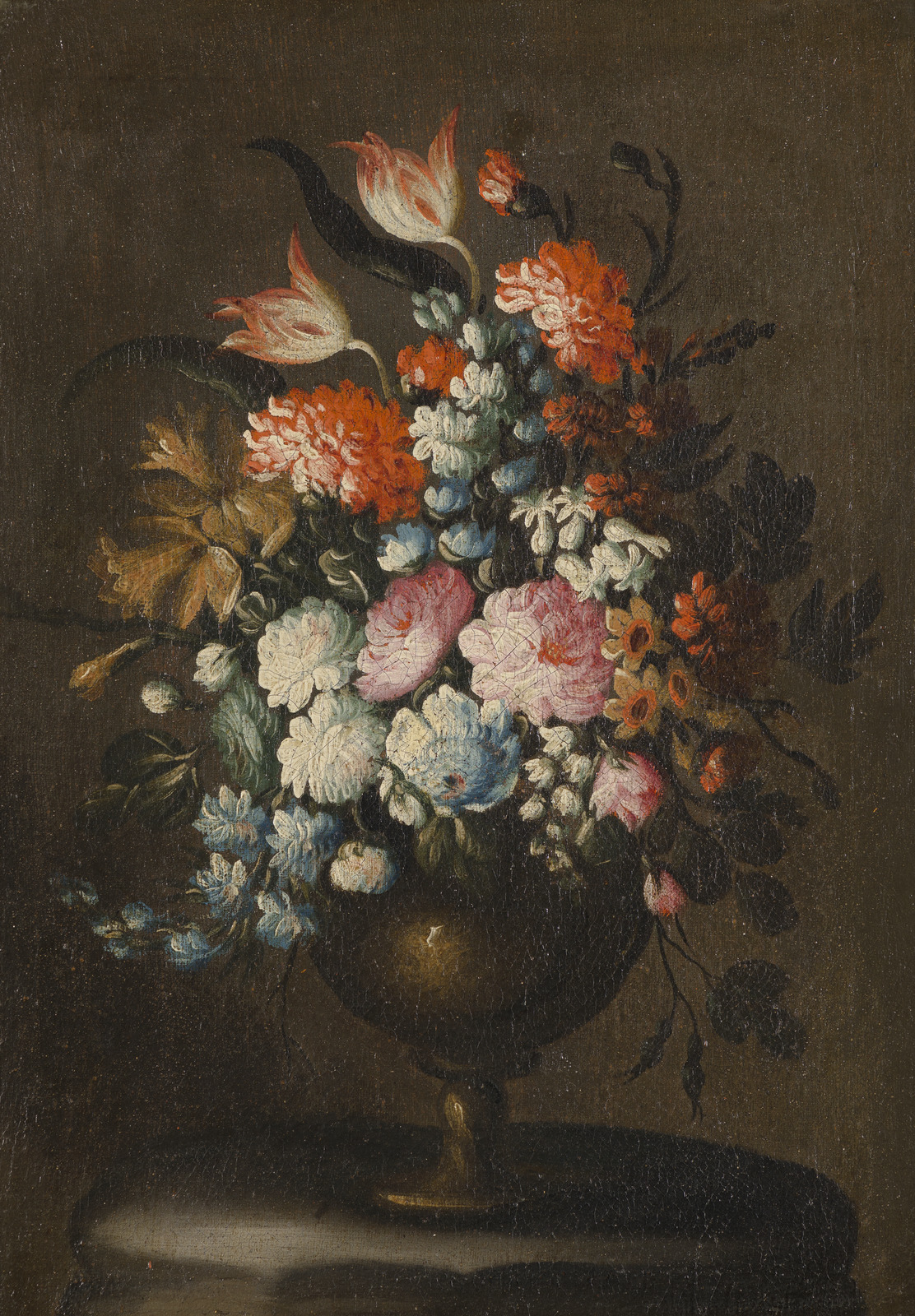 Stilleven met rozen, tulpen en andere bloemen in een...