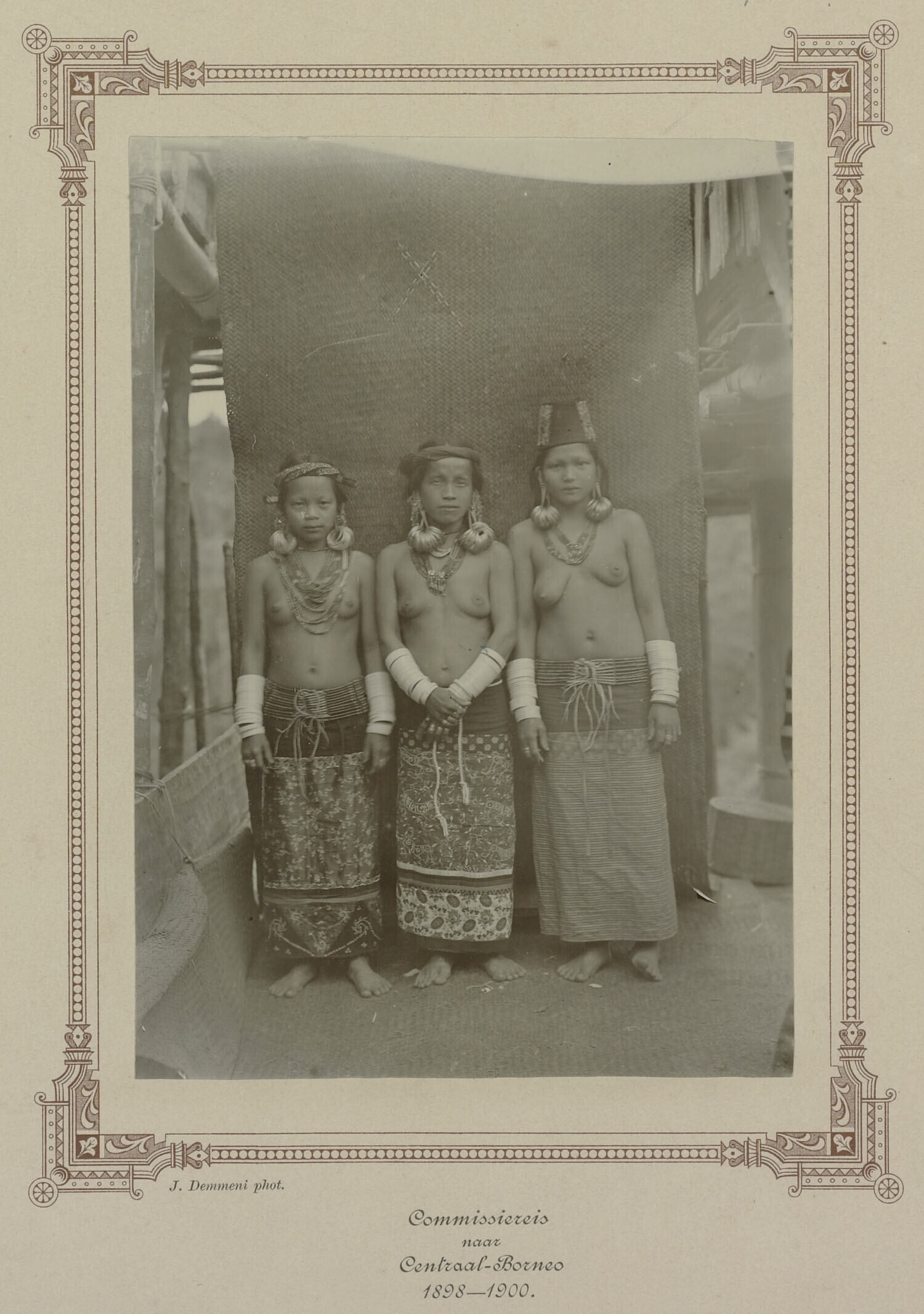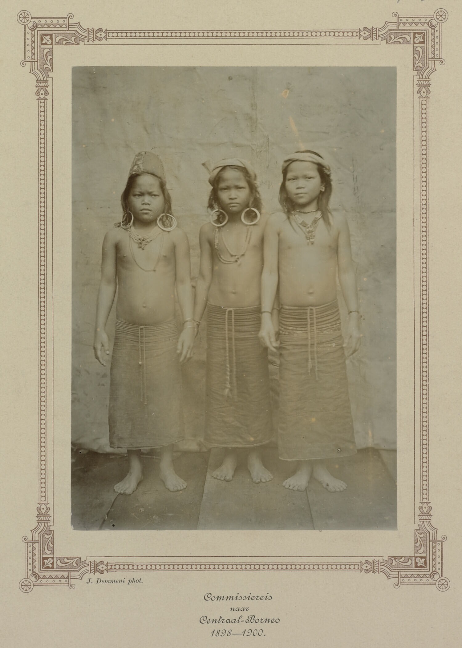 Groepsportret van Oenjang, Oeãn en Agong, drie Kajan...