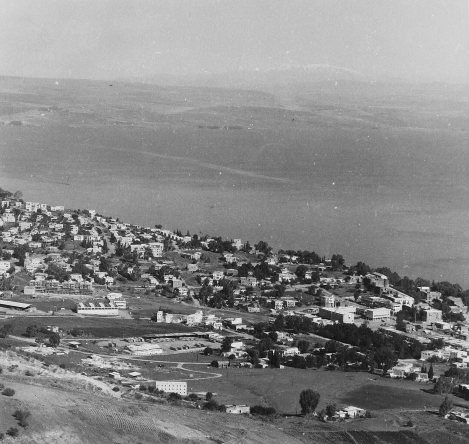 Zicht op Tiberias aan het meer van Galilea met op de...