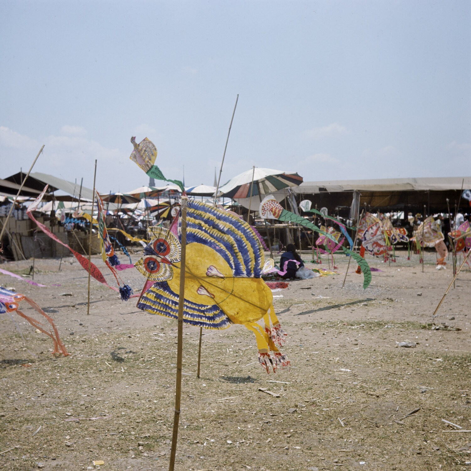 Vliegerkraam op de weekend markt in Bangkok Begin ap...