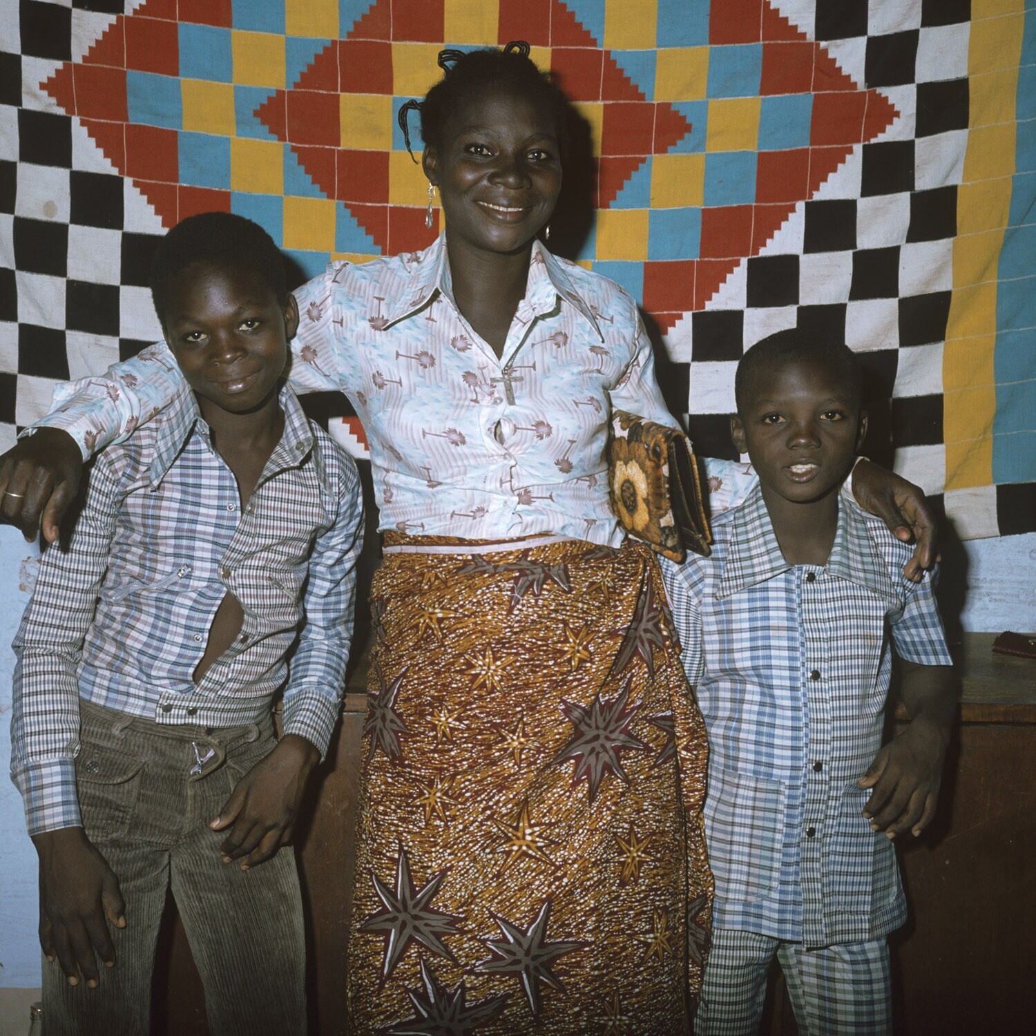 Een vrouw met een mand op haar hoofd komend uit haar...