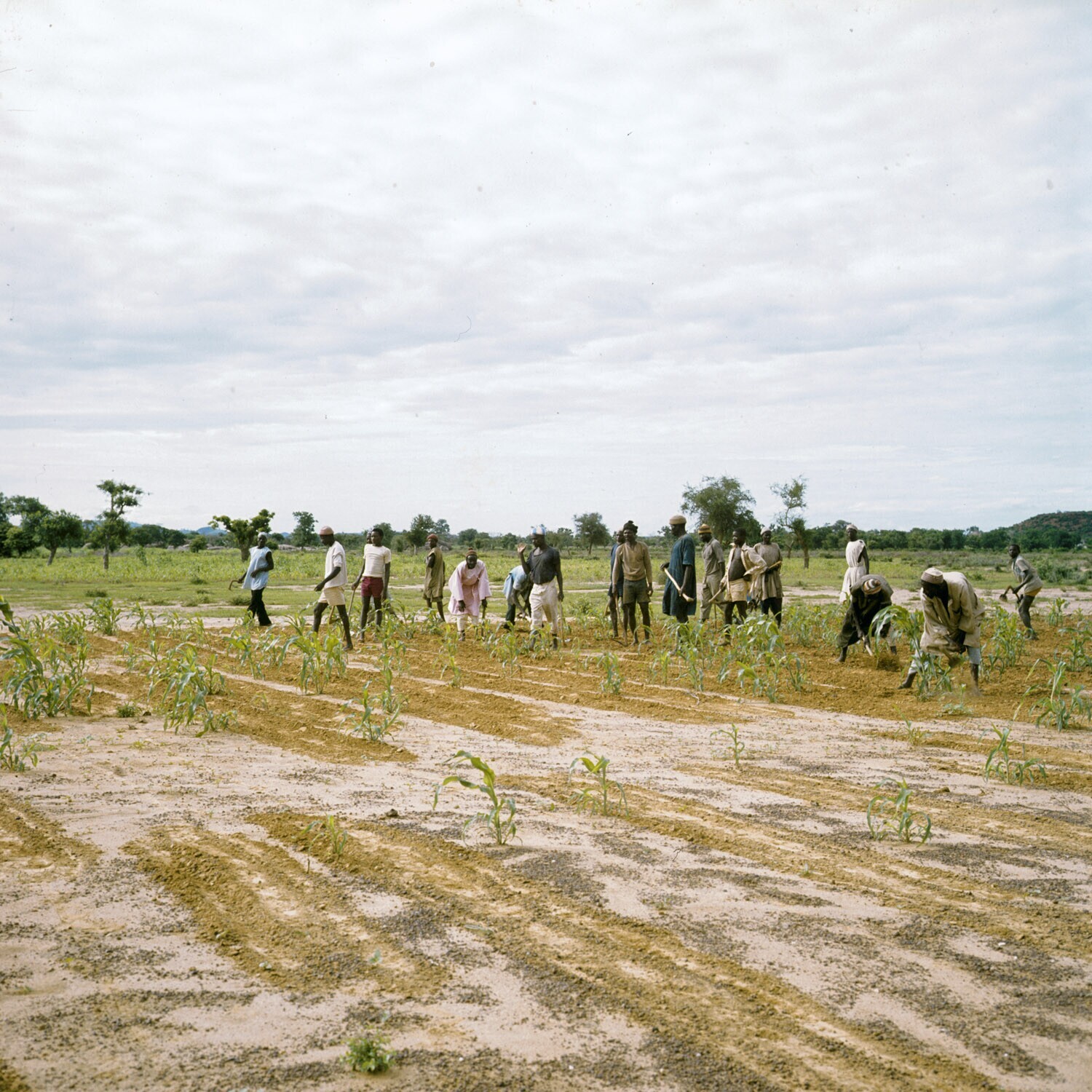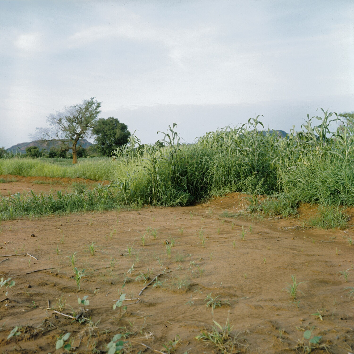 Een milletaanplant op het Mossiplateau. Op de voorgr...