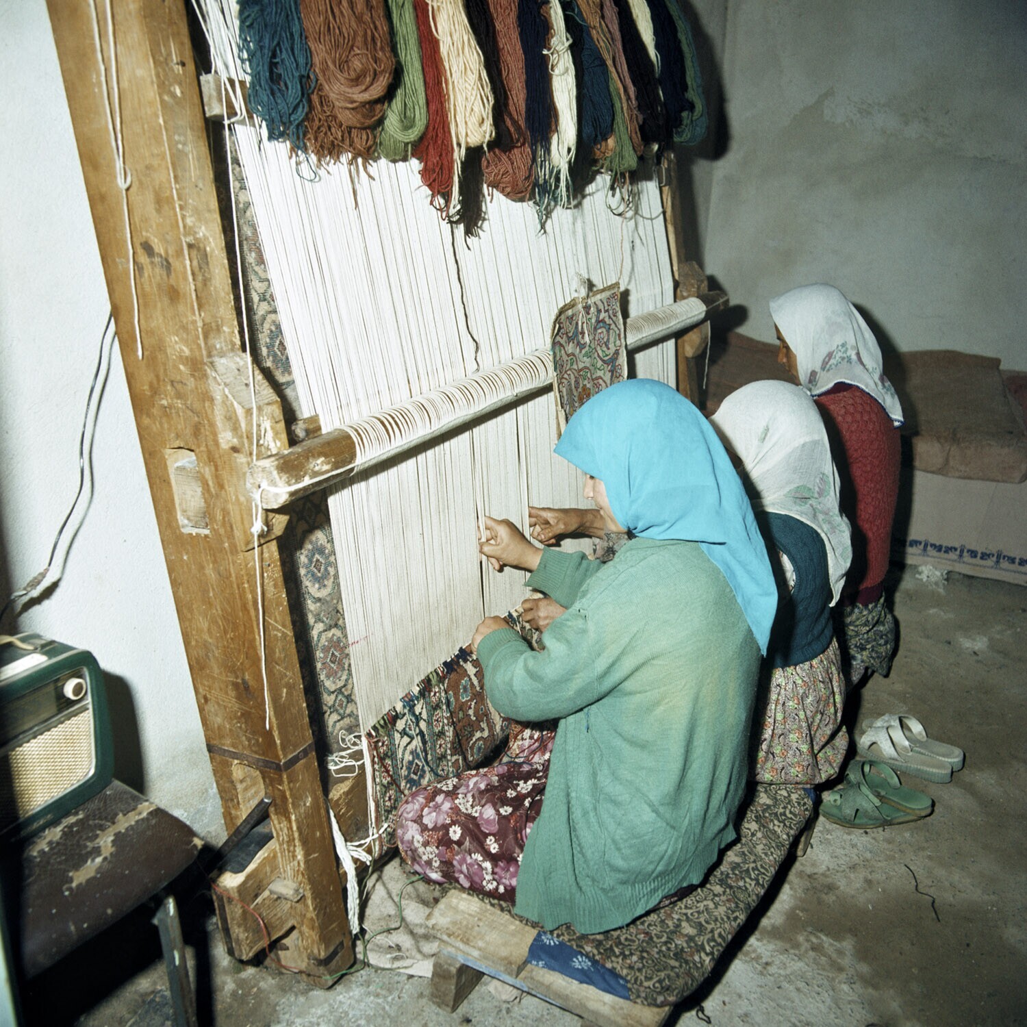 Kayseri, dorpsvrouwen bezig met het knopen van een t...