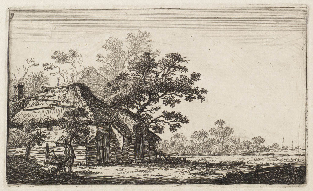 Boer met kruiwagen bij een boederij (no. 9 uit een s...