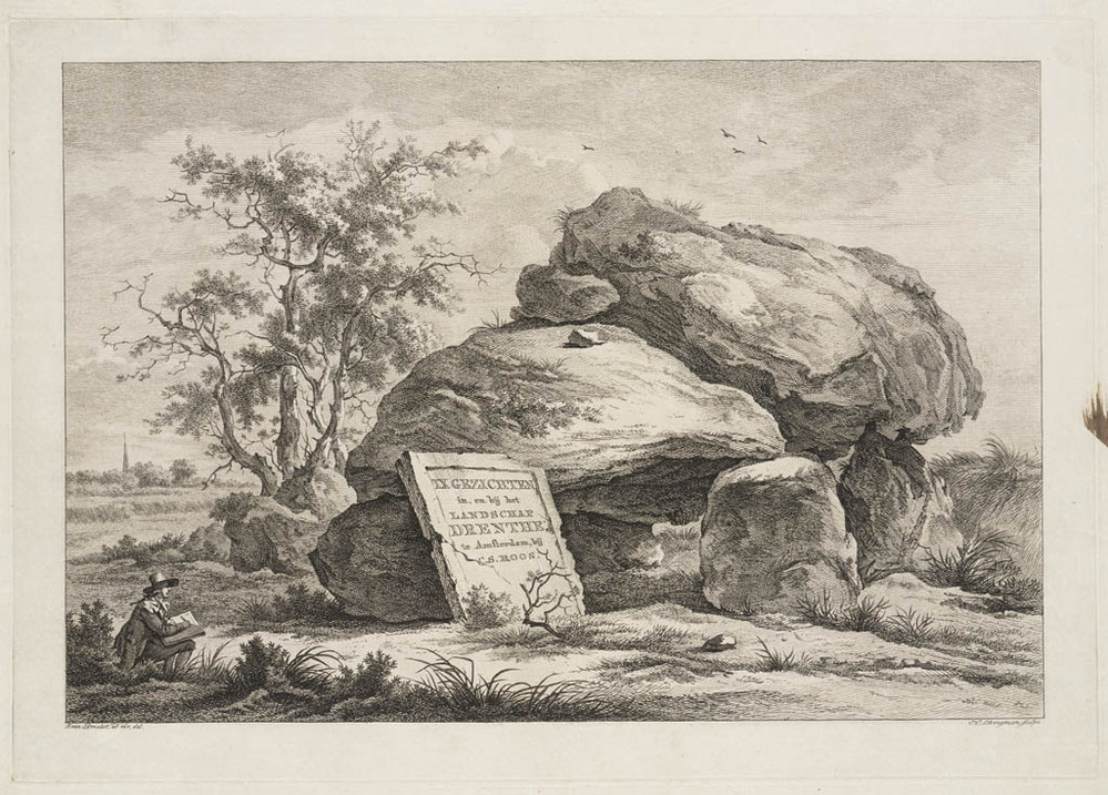Kunstenaar tekent hunebed (titelblad van een serie v...