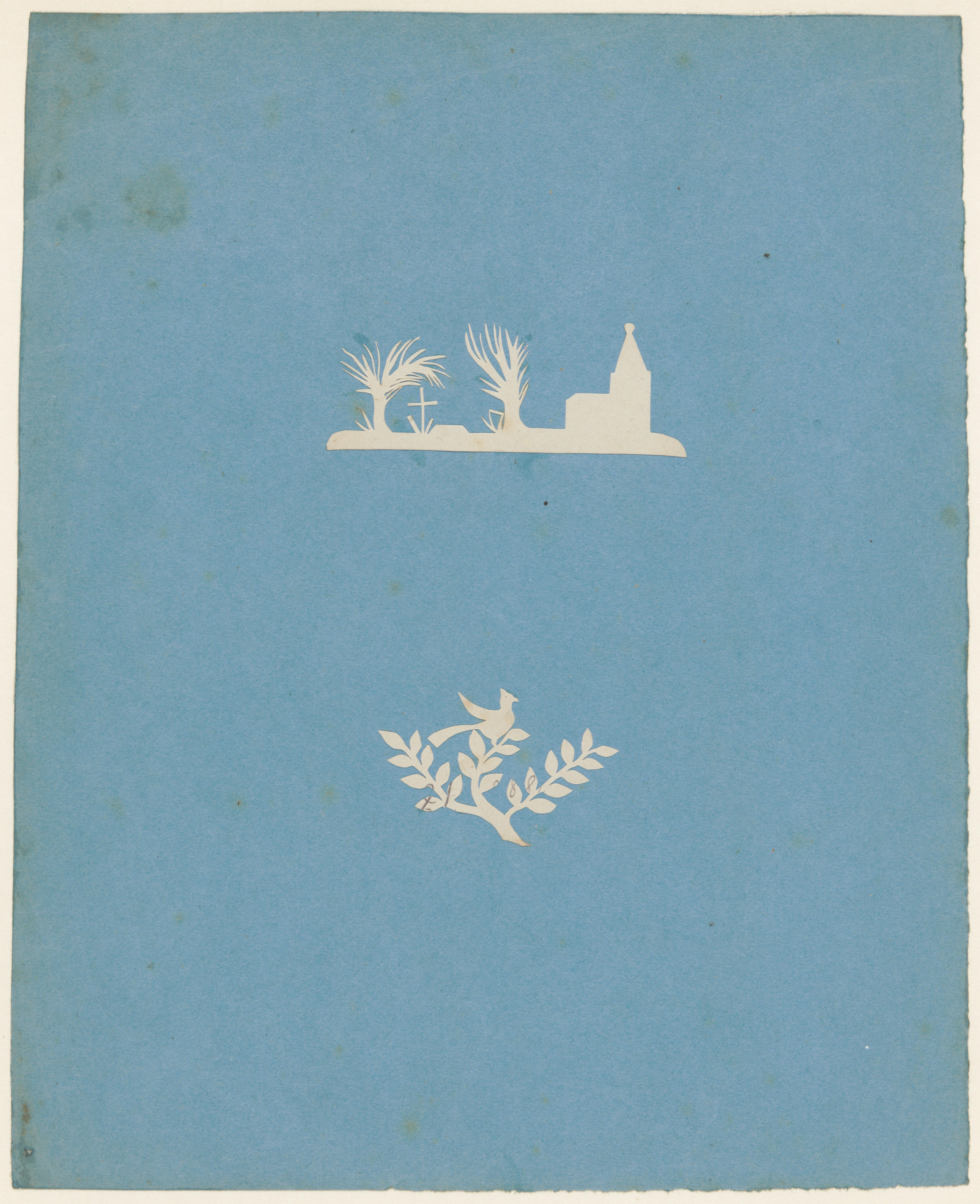 Knipwerk van kerk en tak met vogel, Amsterdam, circa...