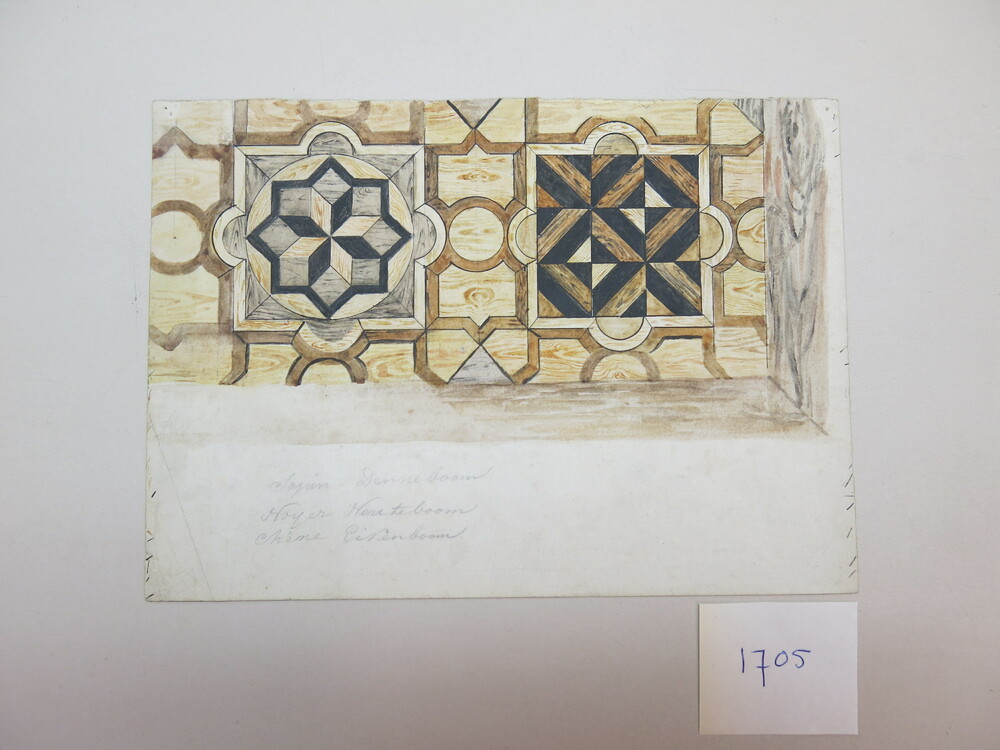 Tekening op papier gemaakt met pen en inkt, ingekleu...