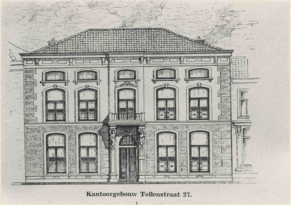 Foto, voorstellende sigarenfabriek "Trio" aan de Var...