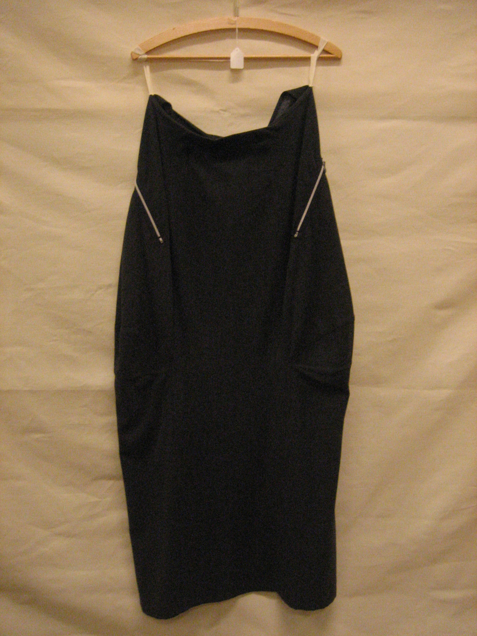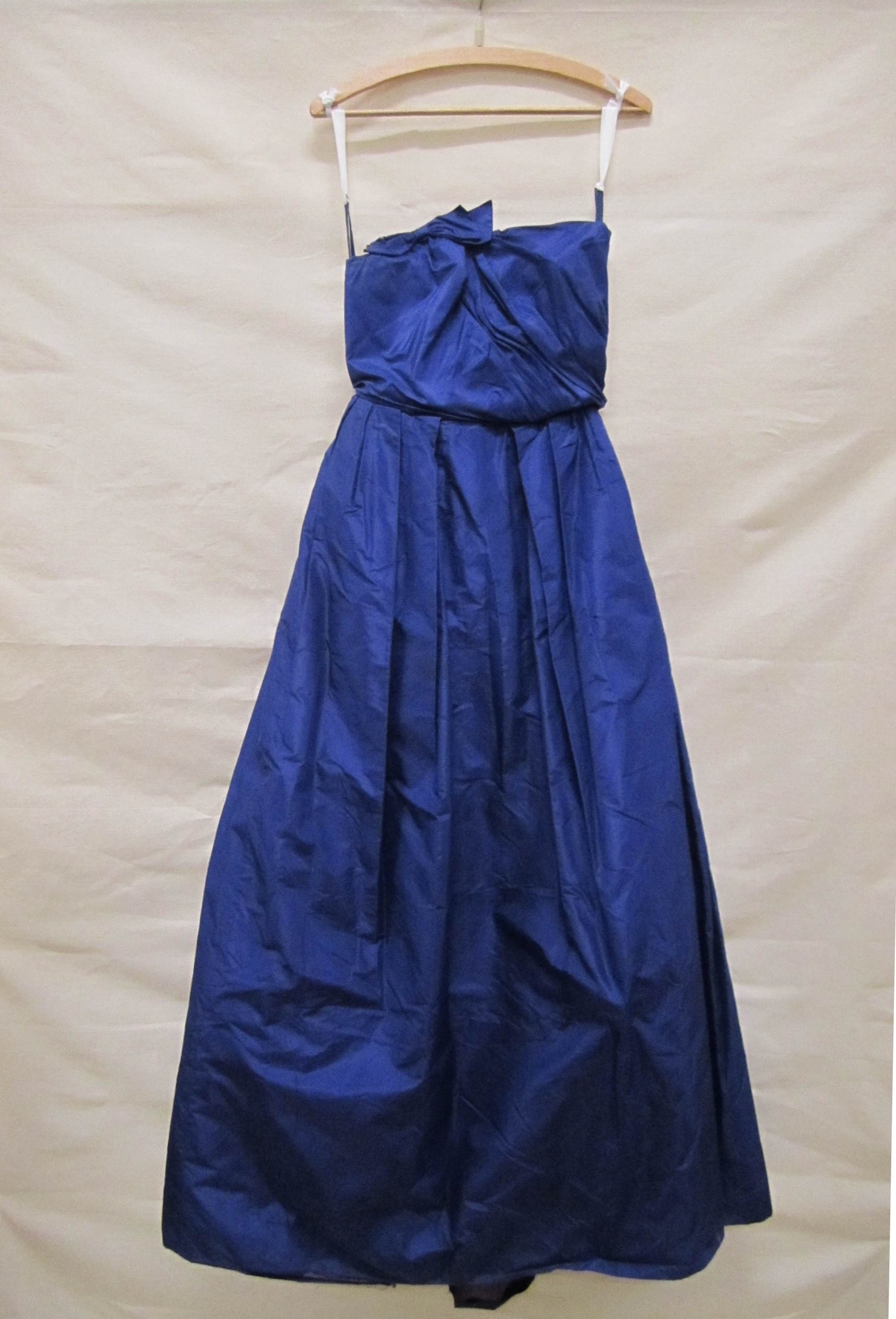Avondjurk van donkerblauwe kunstzijde, strapless mod...