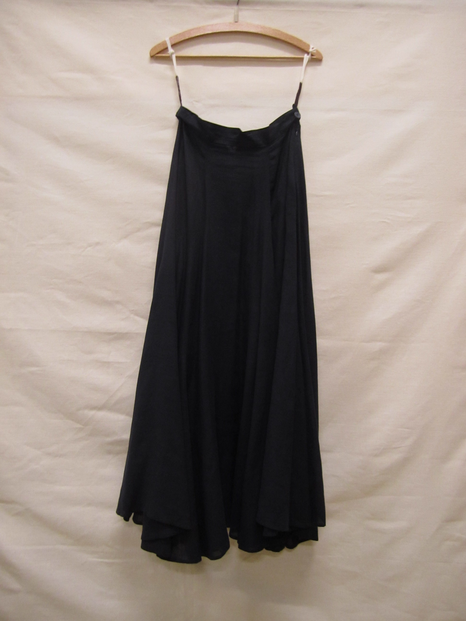 Rok van zwart linnen, zesbaanse rok met ingezette pu...