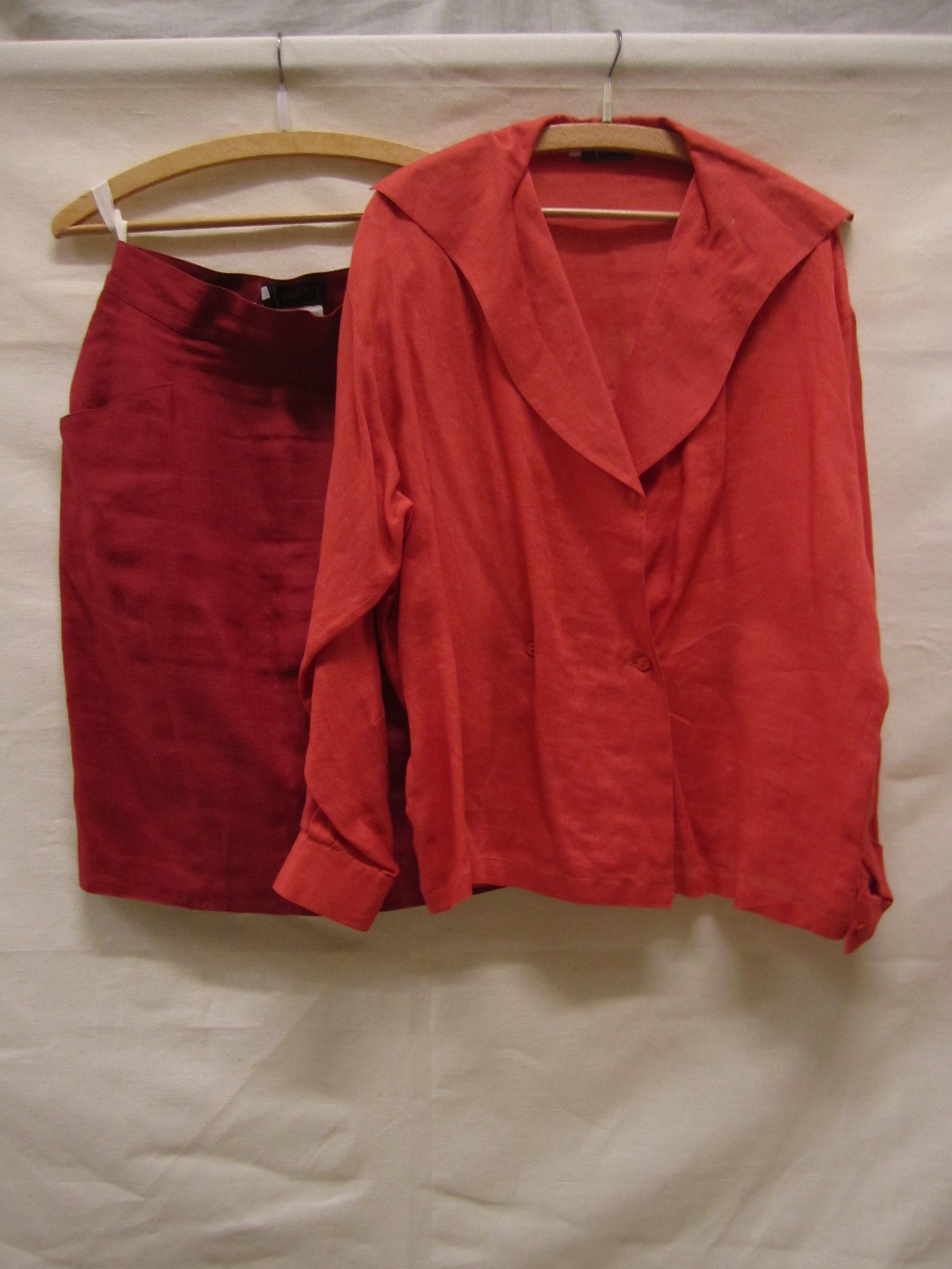 Ensemble van rood en lichtrood linnen, bestaande uit...