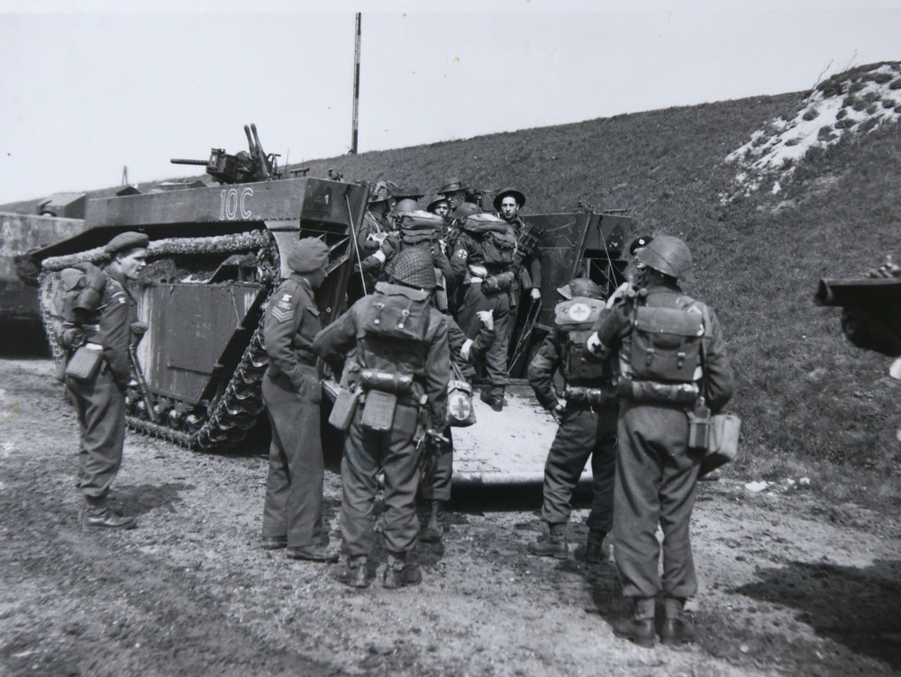 Canadezen bij spoordijk (april 1945). WOII.