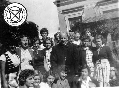 V.l.n.r., staand: mevr. Groot; mevr. Derks; mevr. Bruins; pater Paulinus; mevr. Schoenmaker; mevr. Clijsters; mevr. Bakker; mevr. van Schaik; mevr. J. de Wit; V.l.n.r., gehurkt: Cis Bos; Margriet Clijsters; Dina Eltink; Maria Jeuken. (2)