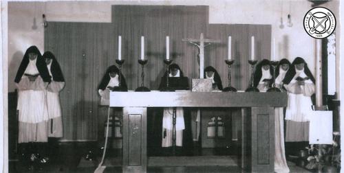 Zusters op weg naar de kapel