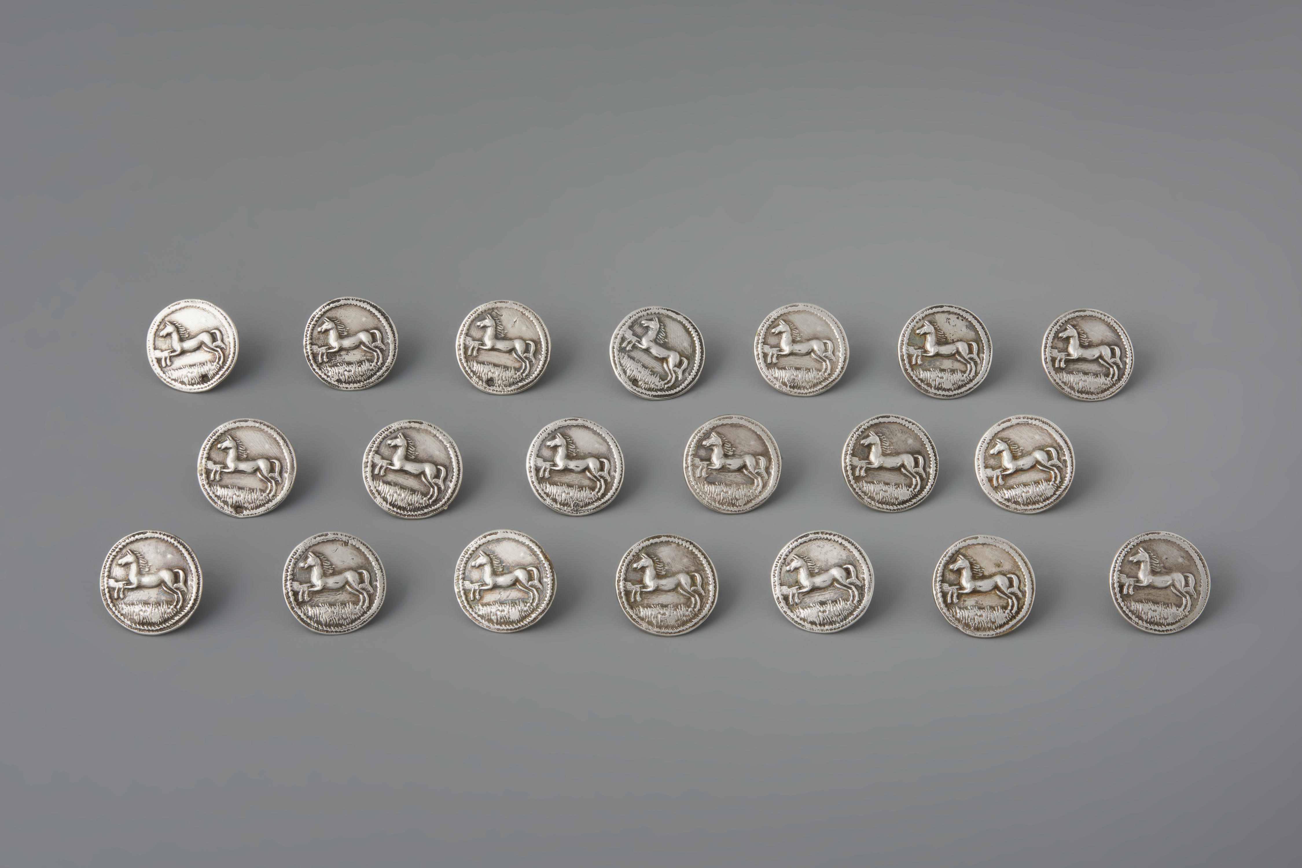 Twintig zilveren knopen met afbeelding van paard, 1794