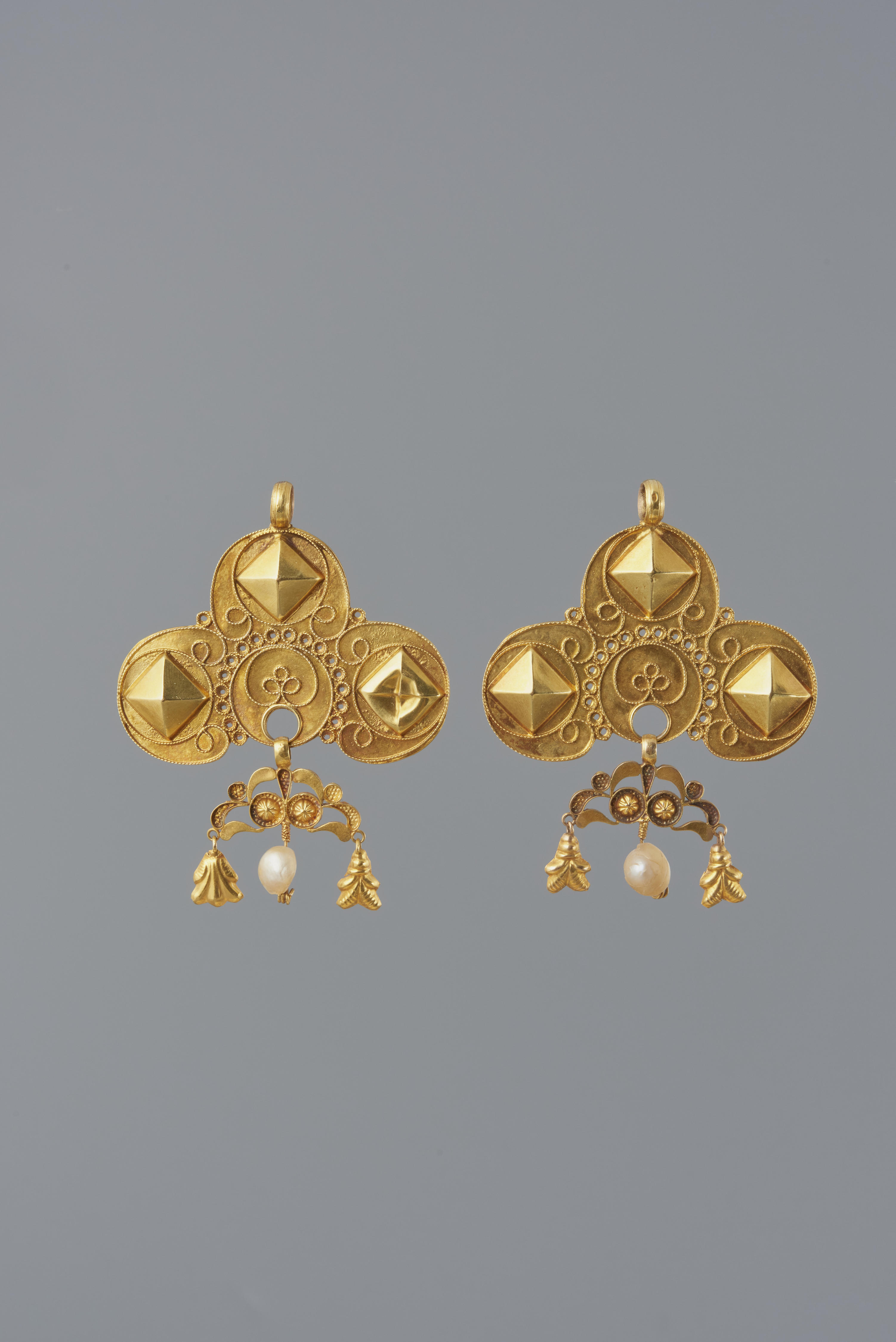 Paar gouden 'strikken met waaiers', Walcheren, circa...