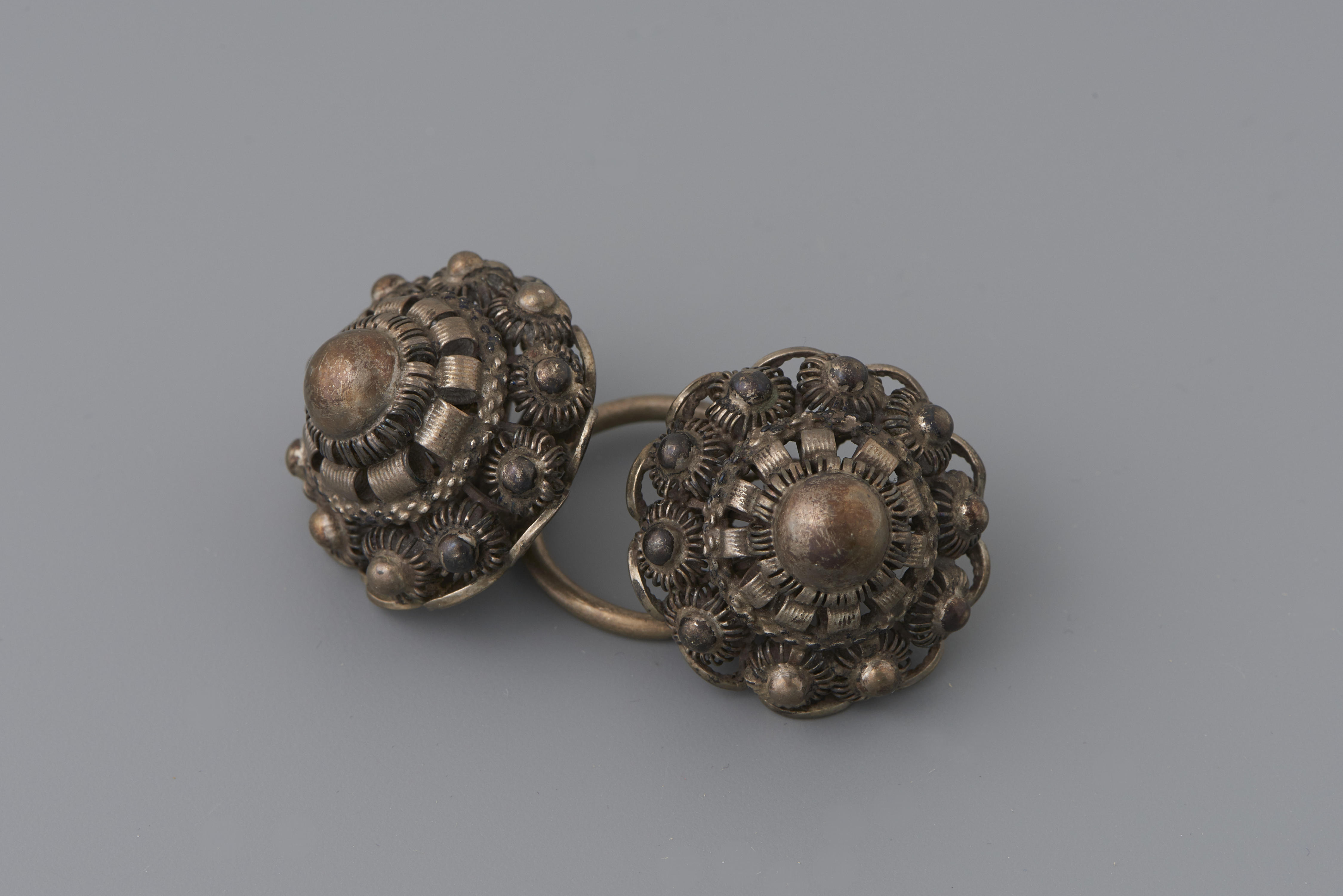 Paar zilveren keelknopen, Walcheren, 1890–1900