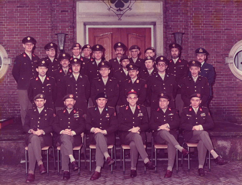 Groepsfoto staf 4 Divisie voor het stafgebouw op de ...