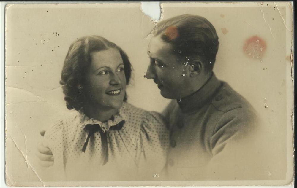 Soldaat met zijn meisje - afbeelding van een verlief...