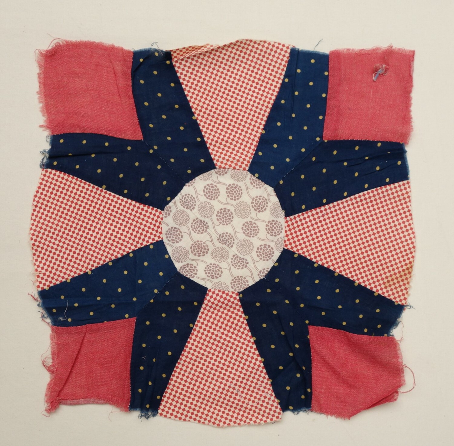 Factory woven and printed cloth hand stitched (running stitch) pieced (34)