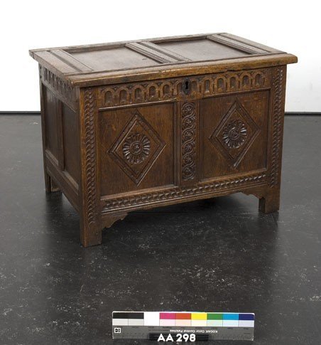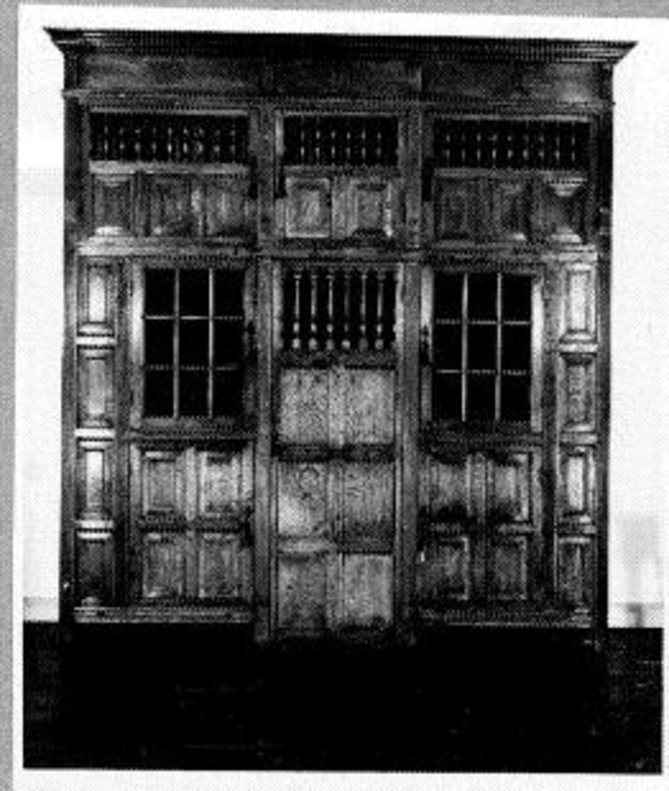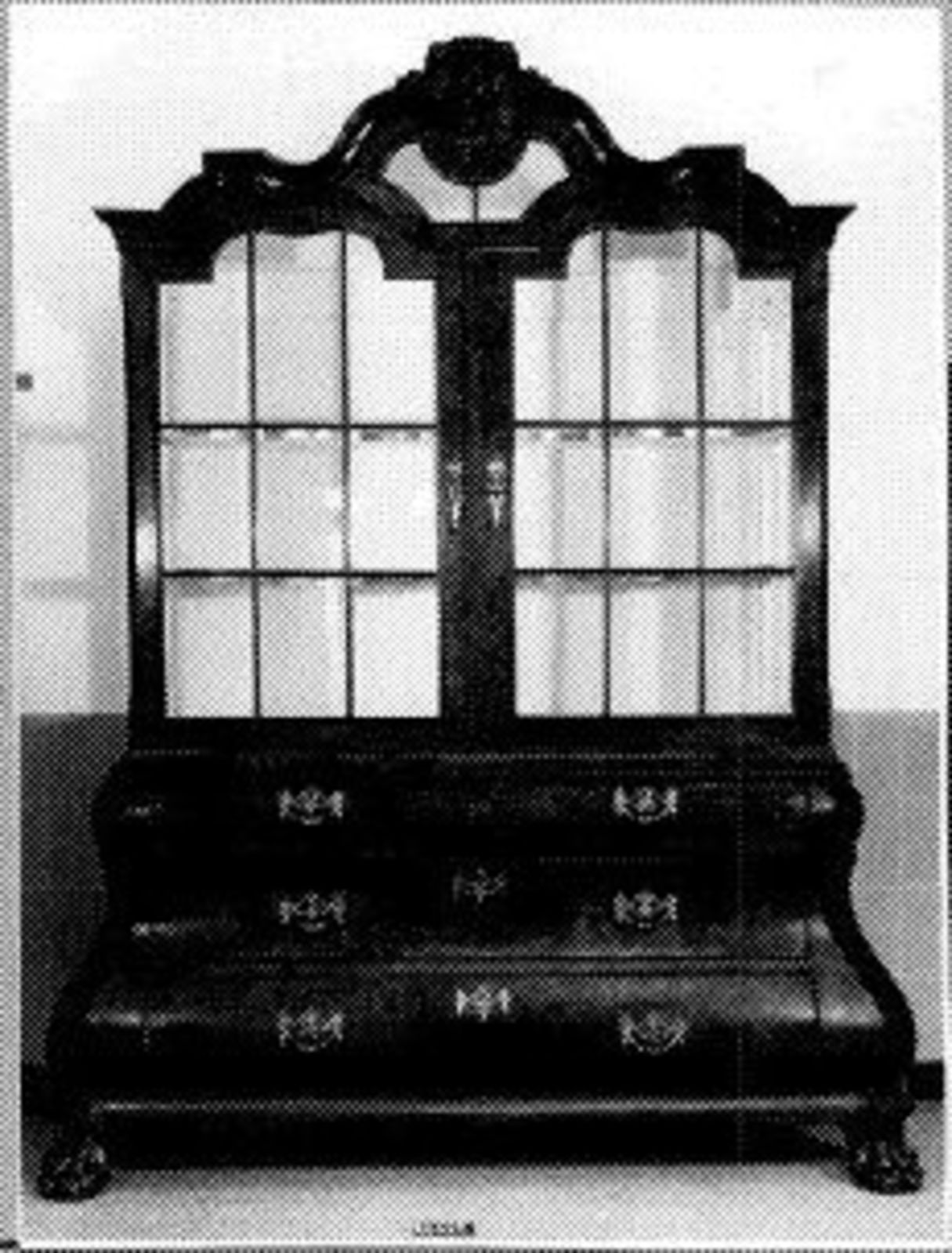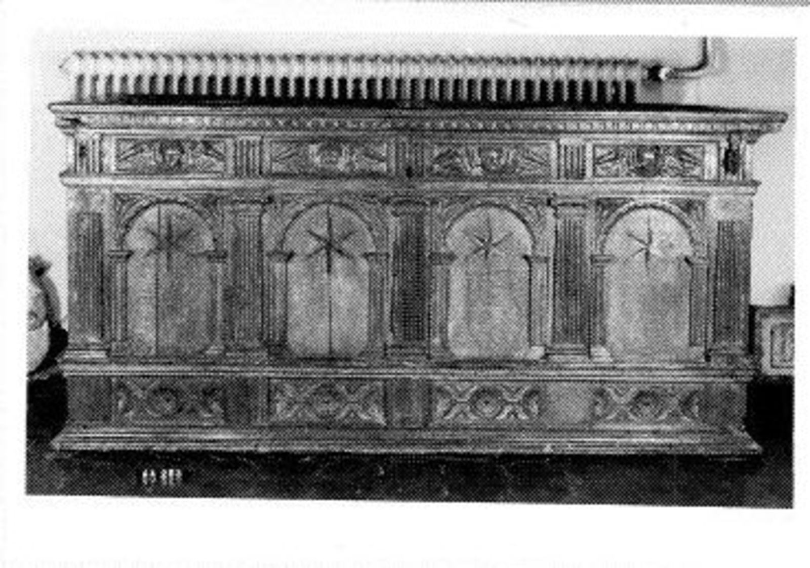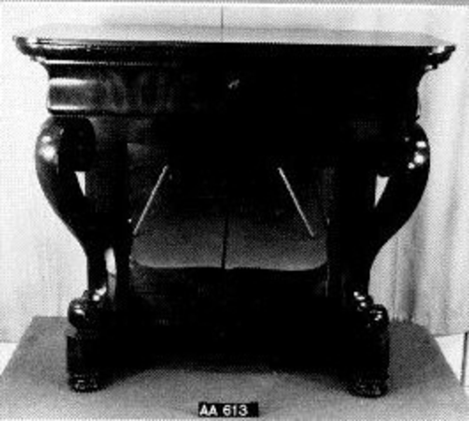 diverse houtsoorten belijmd met padoek- en cederhout, versierd met beschilderde wit marmeren plaquettes (1)