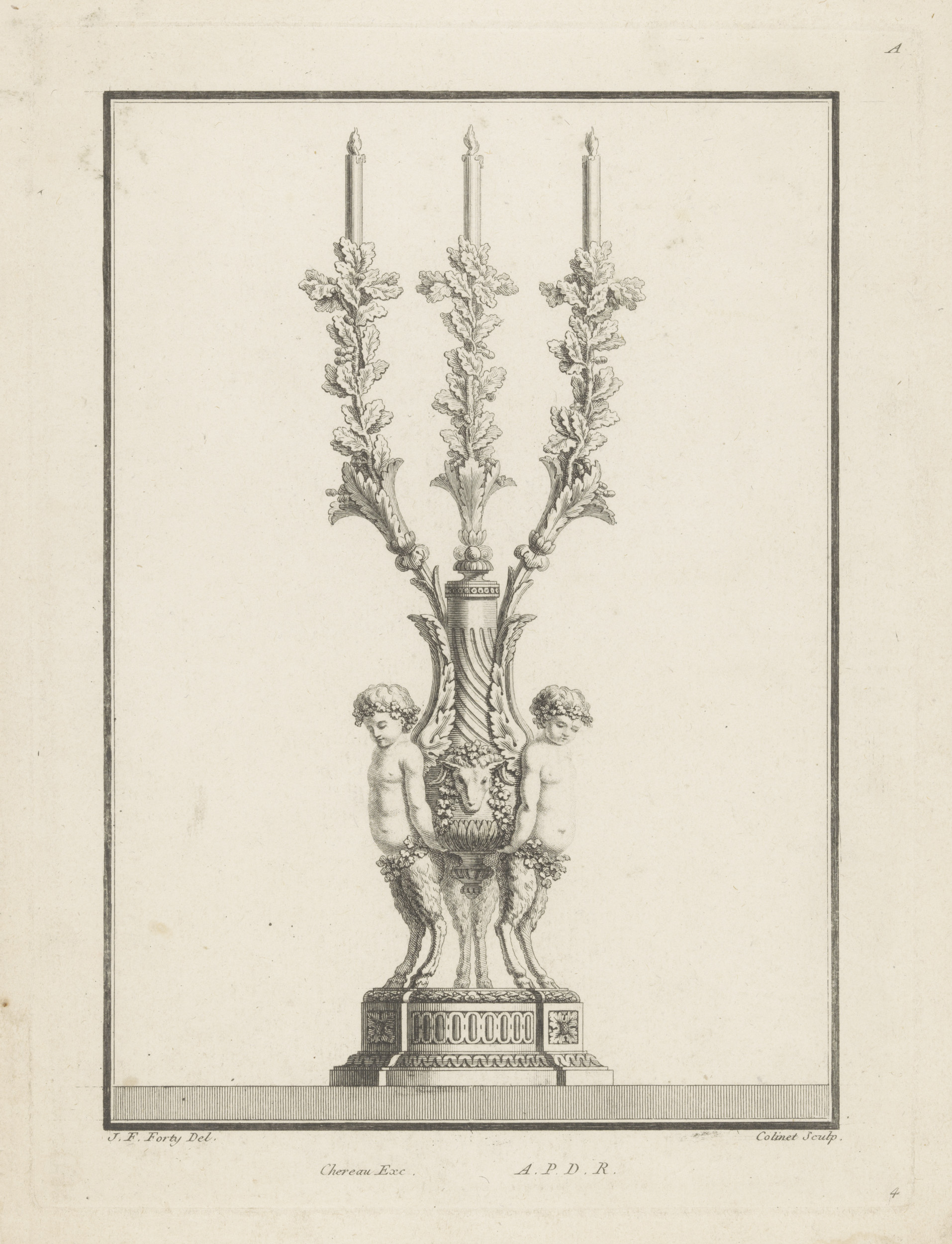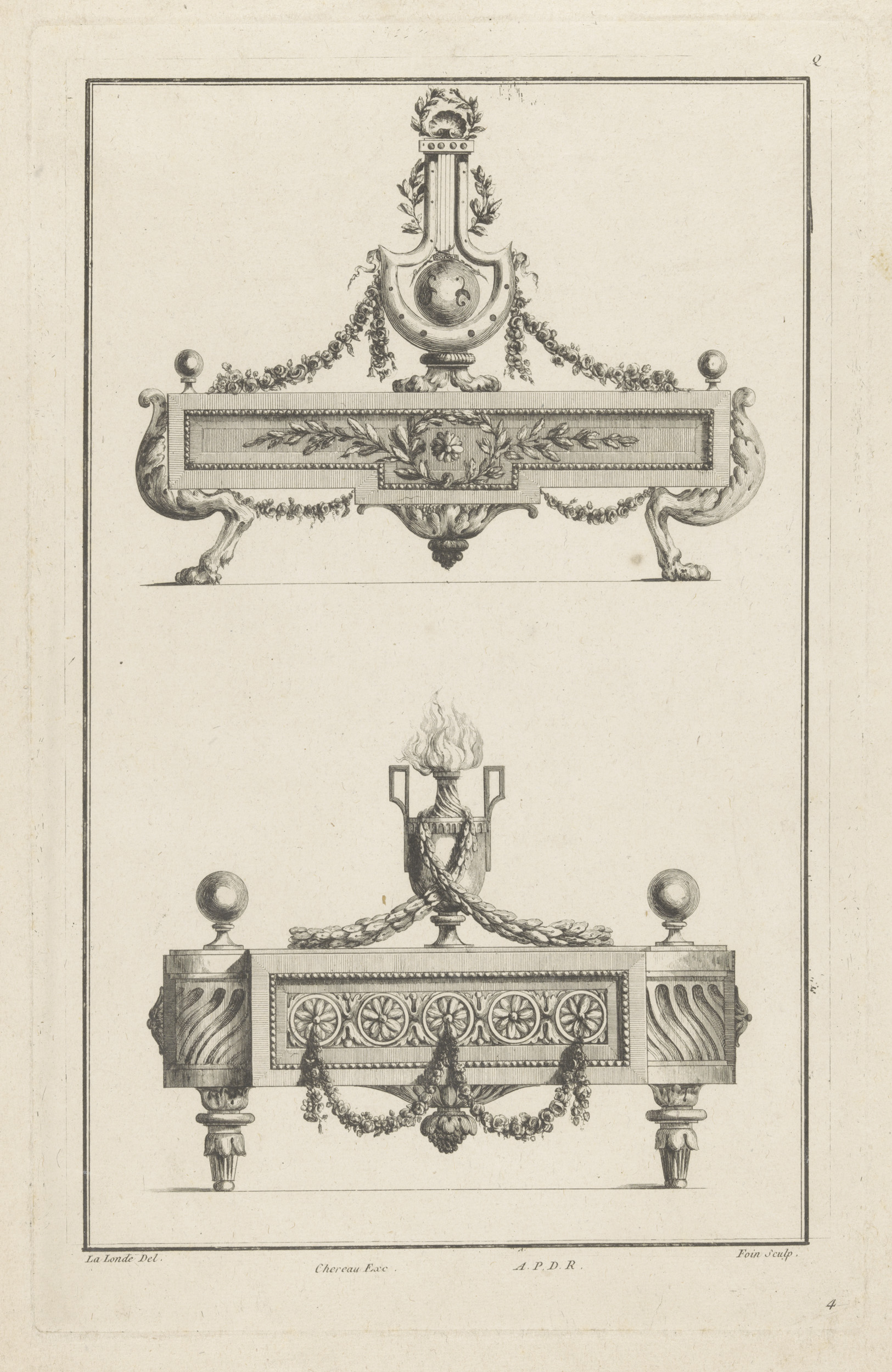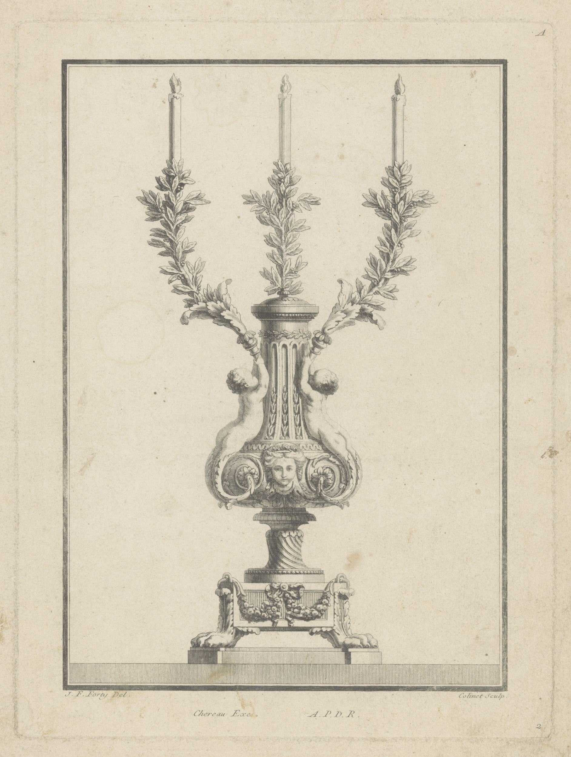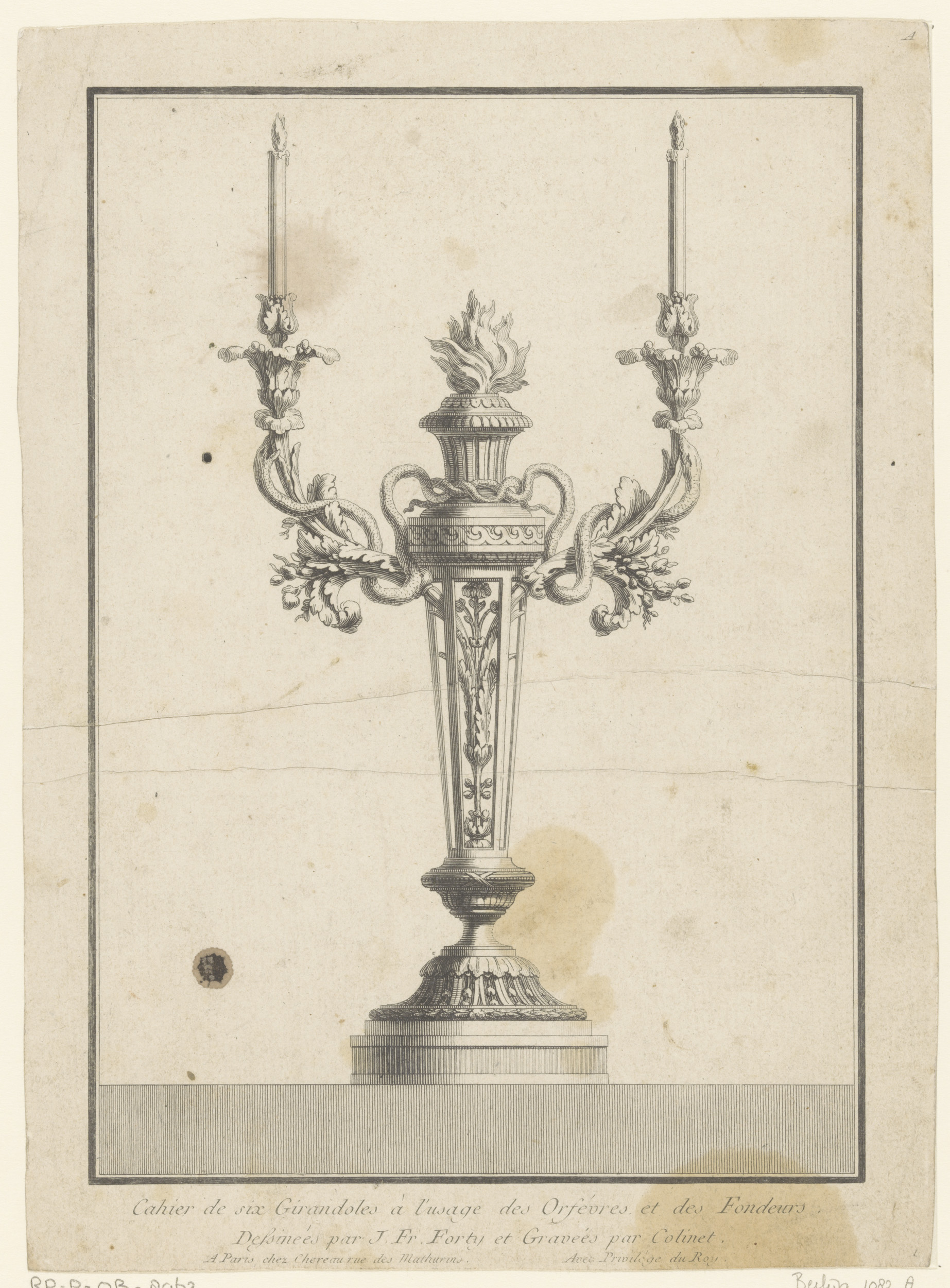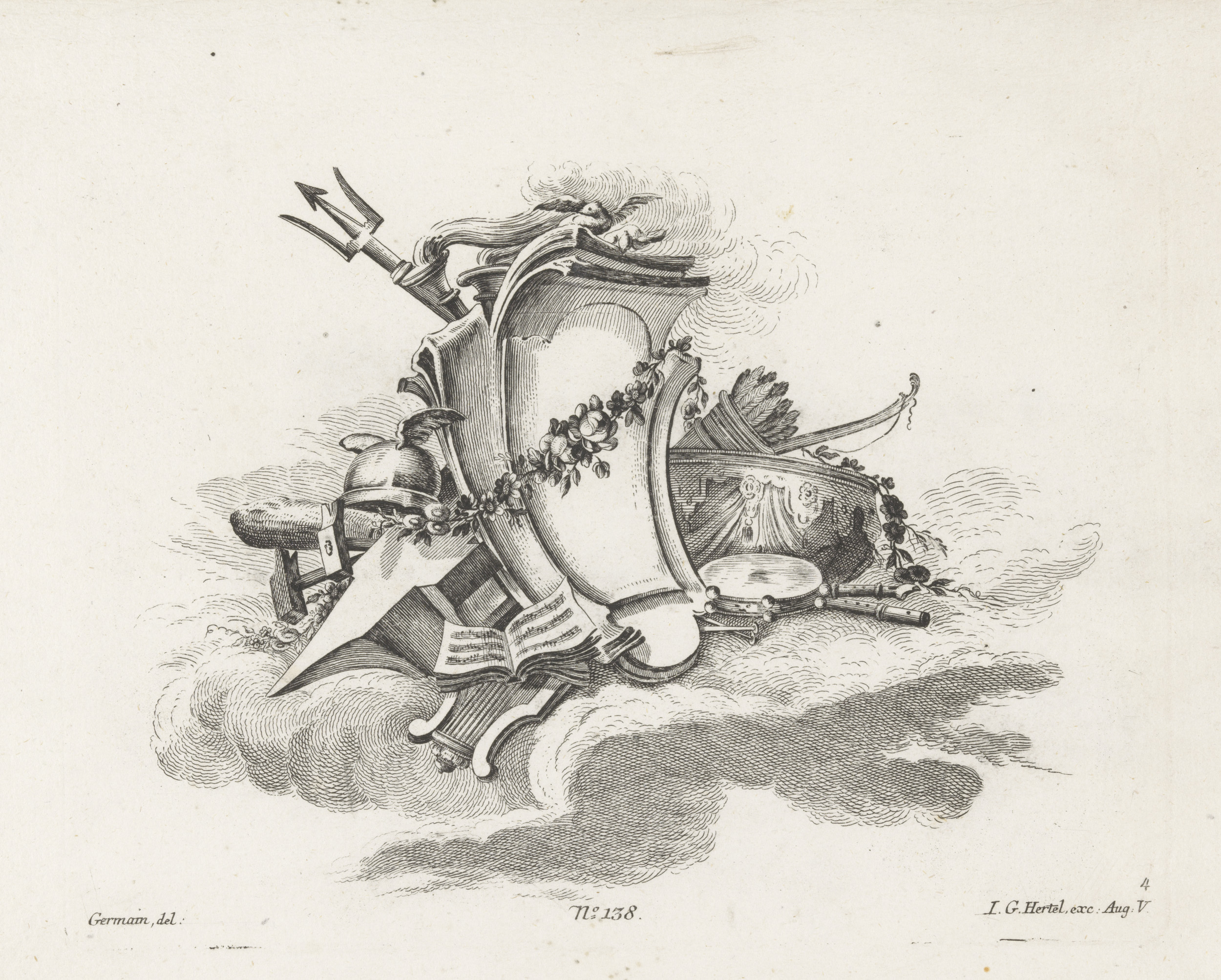 Arabesken met fakkel, vogels, pijlen en caduceus