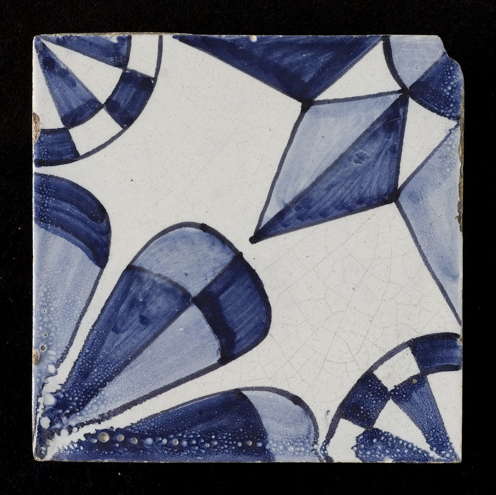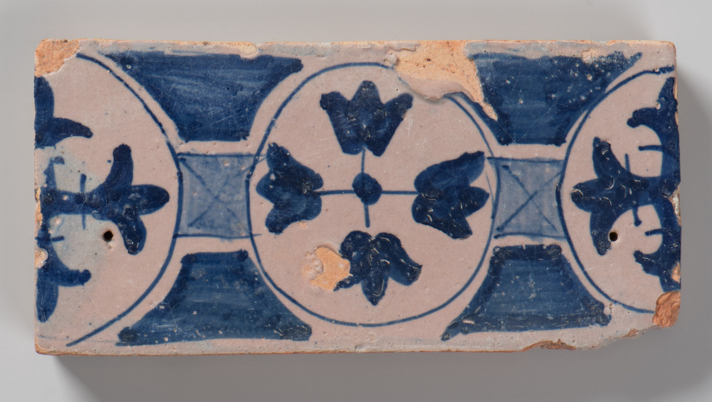 randtegel van keramiek met tinglazuur, voorstellende...