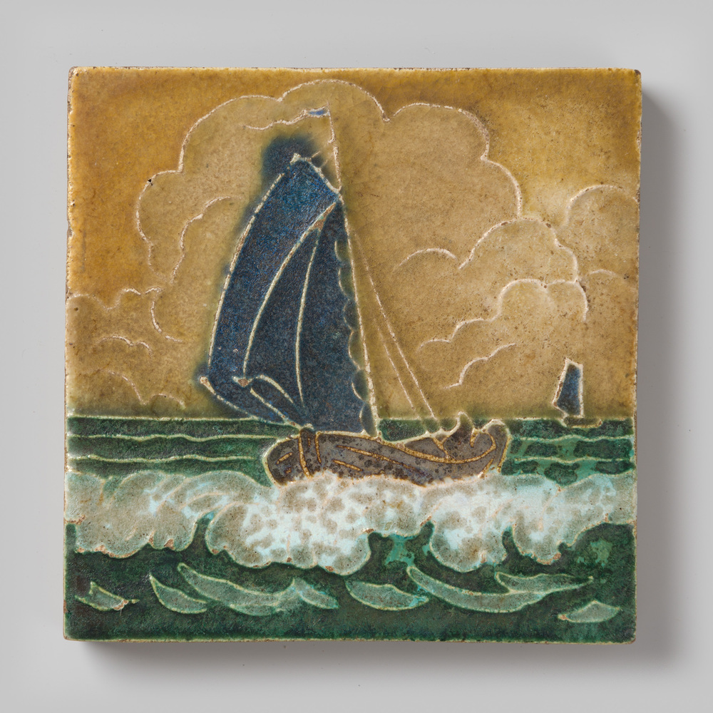 Tegel in cloisonné-techniek, met voorstelling: Neder...