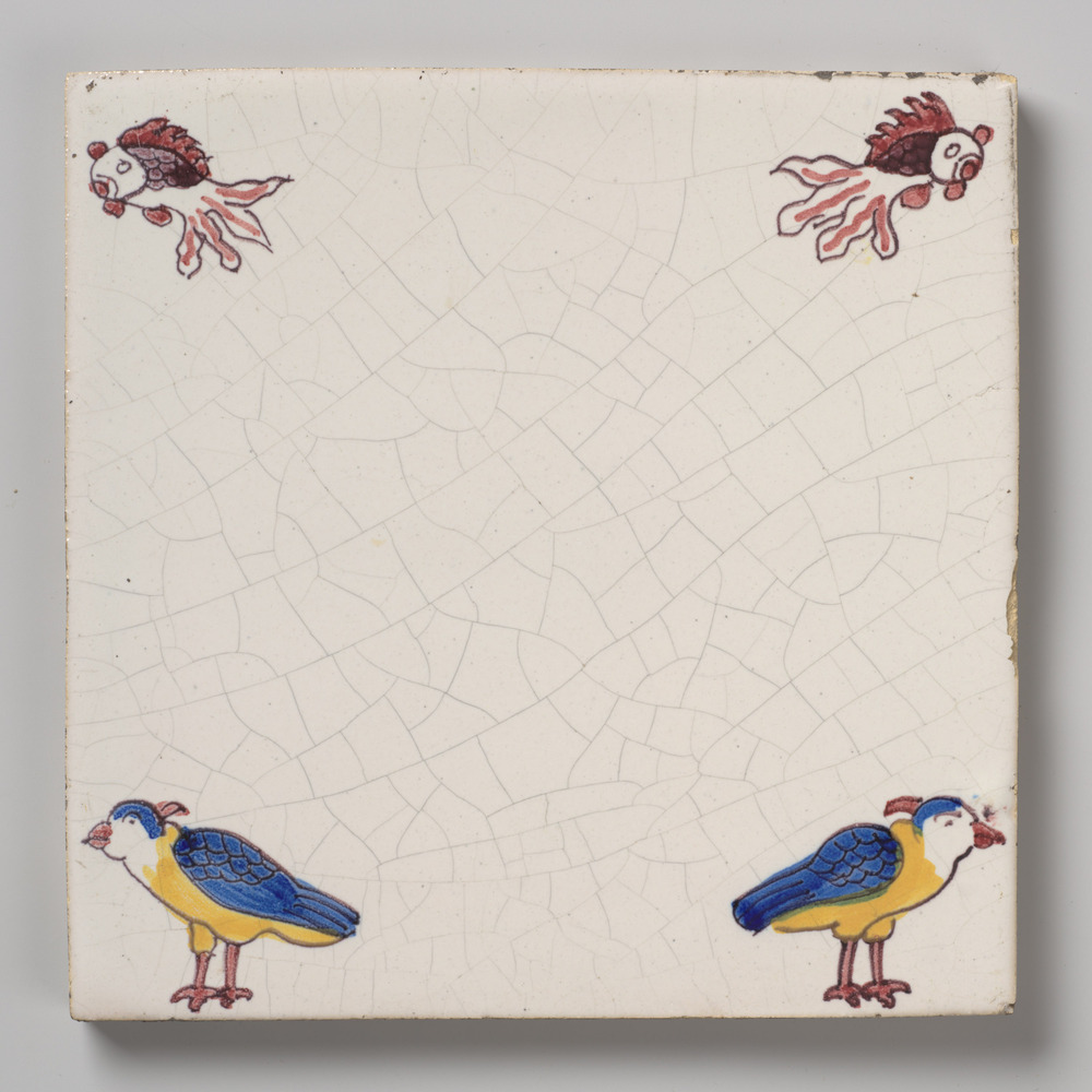 Tegel van keramiek met tinglazuur, voorstellende: or...