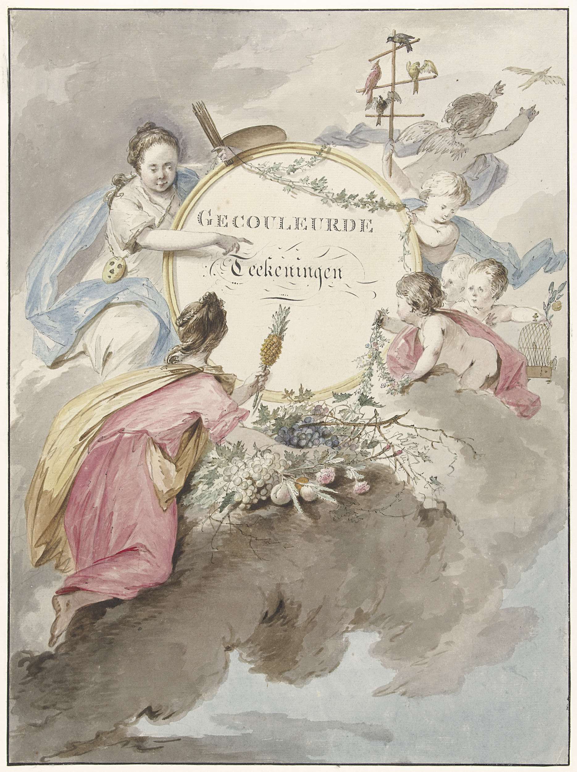 Titelblad voor kunstboek met Gecouleurde Teekeningen