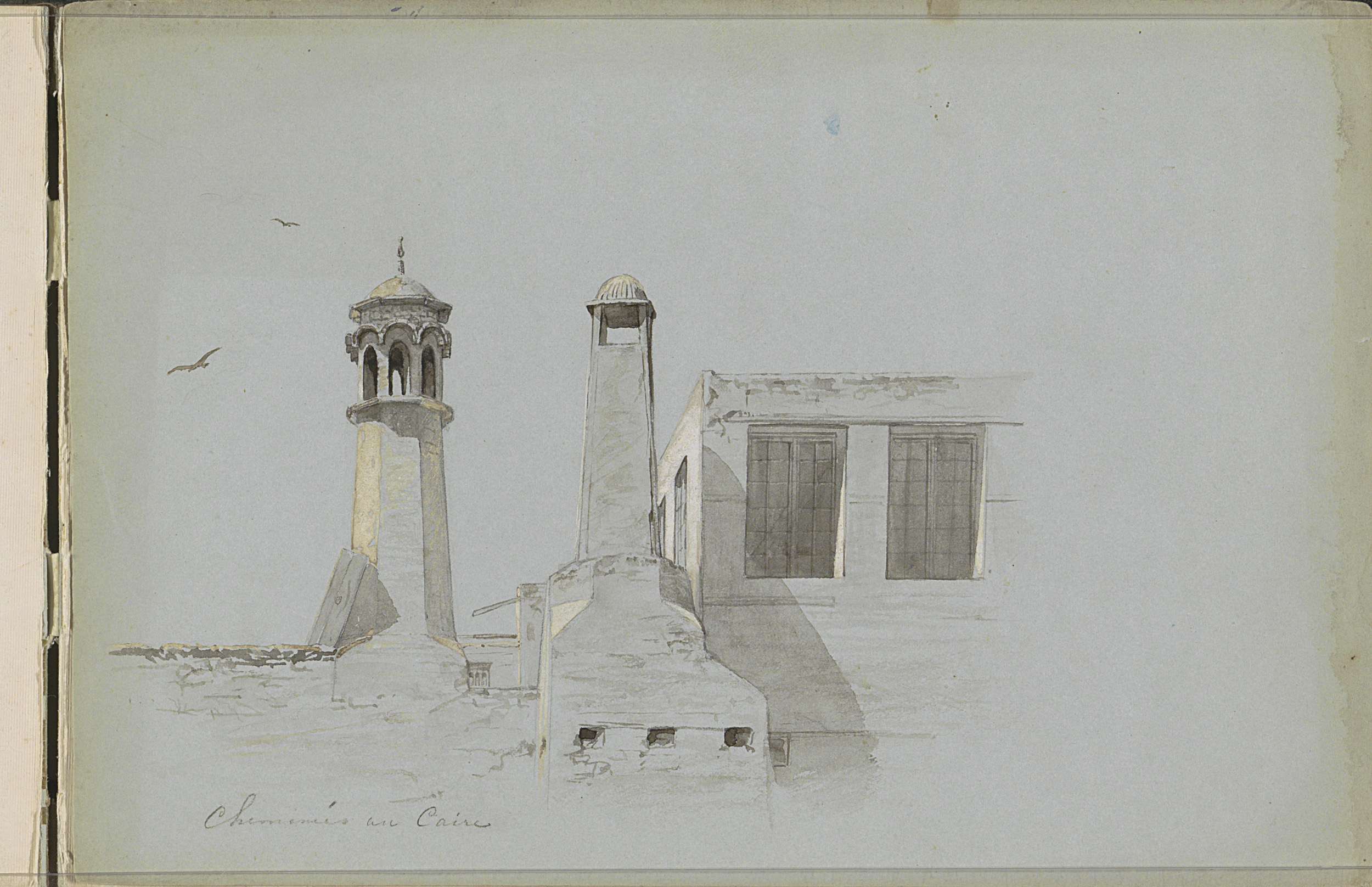 Studieblad, onder andere met een gondel en een kop v...