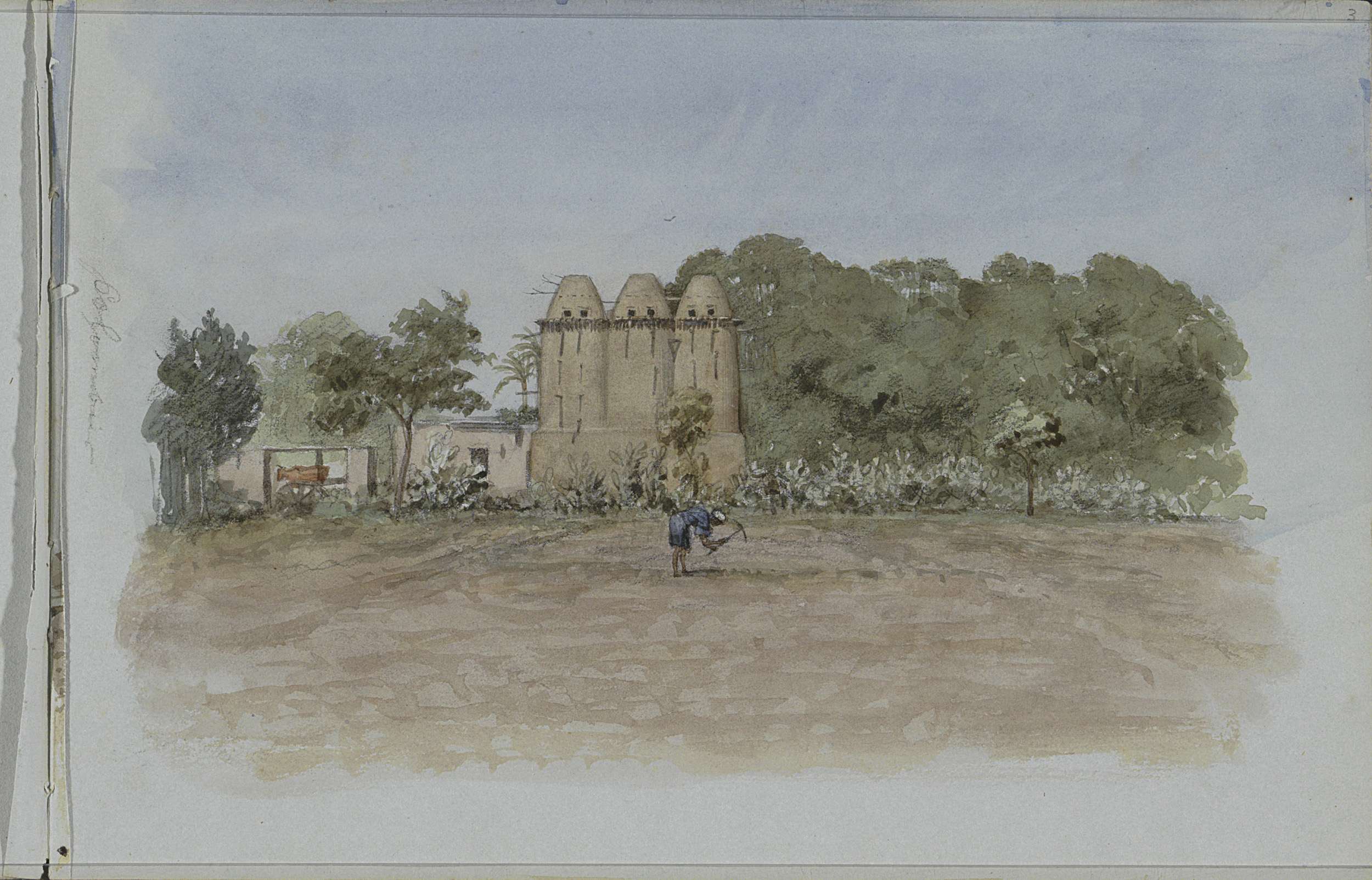 Duiventorens bij een stuk landbouwgrond