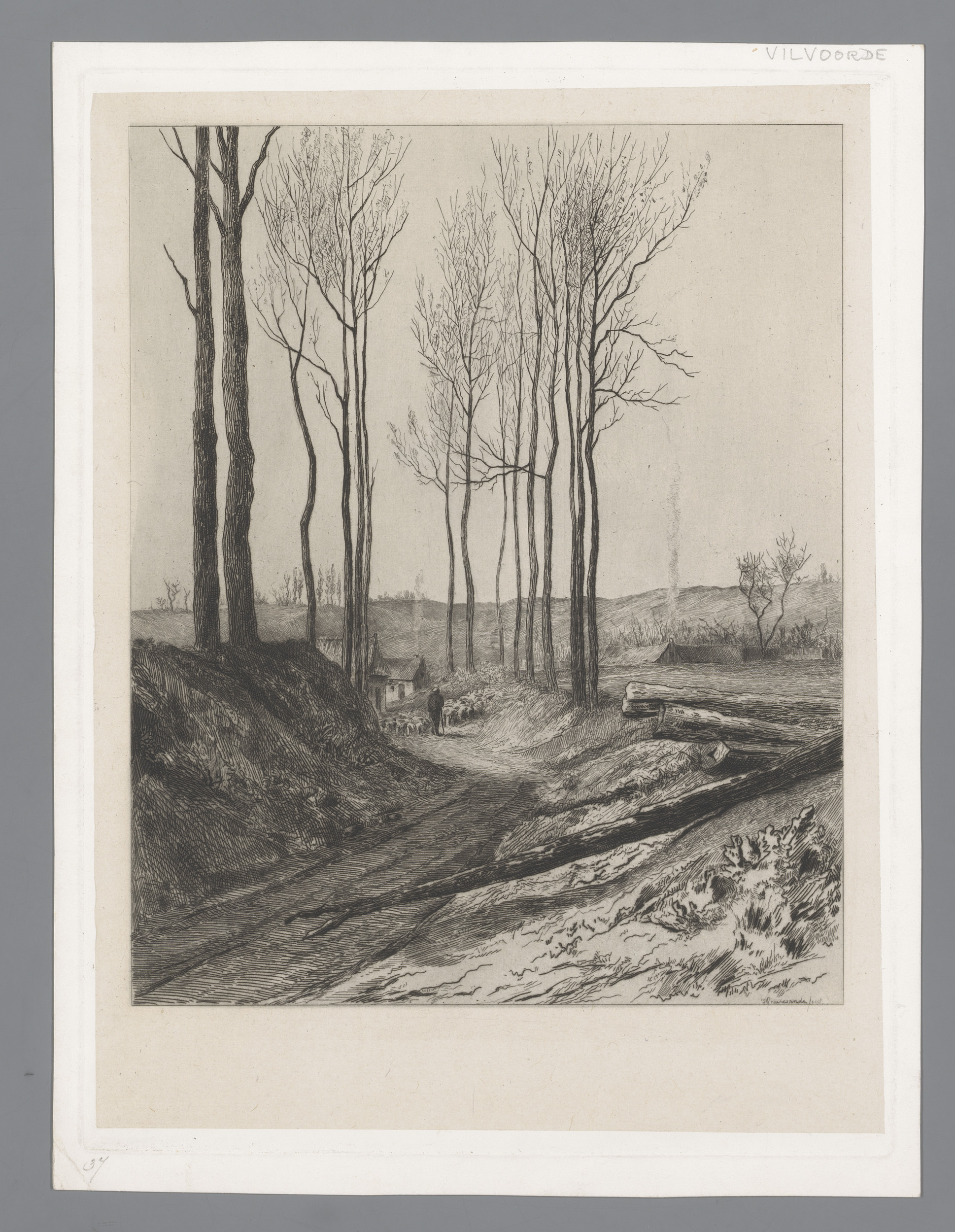 Herder met kudde op een holle weg bij Vilvoorde