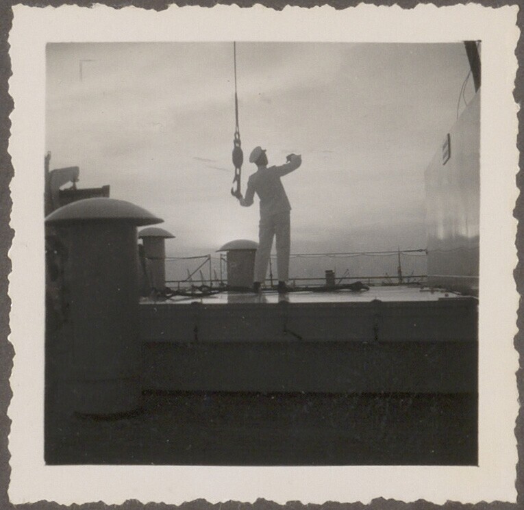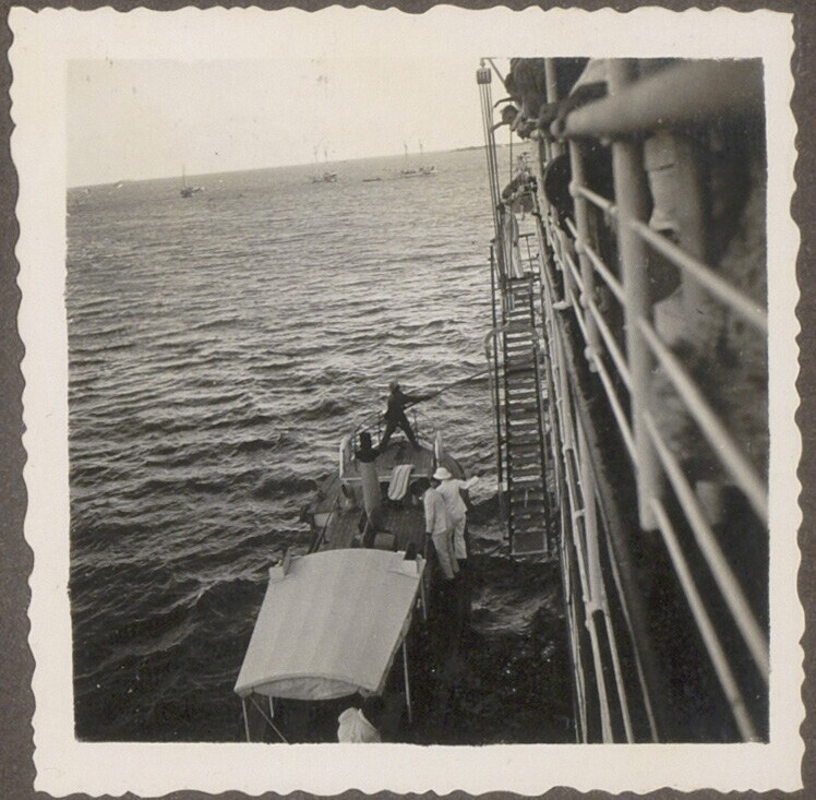 Aan de reling van de 'Treub' van de KPM