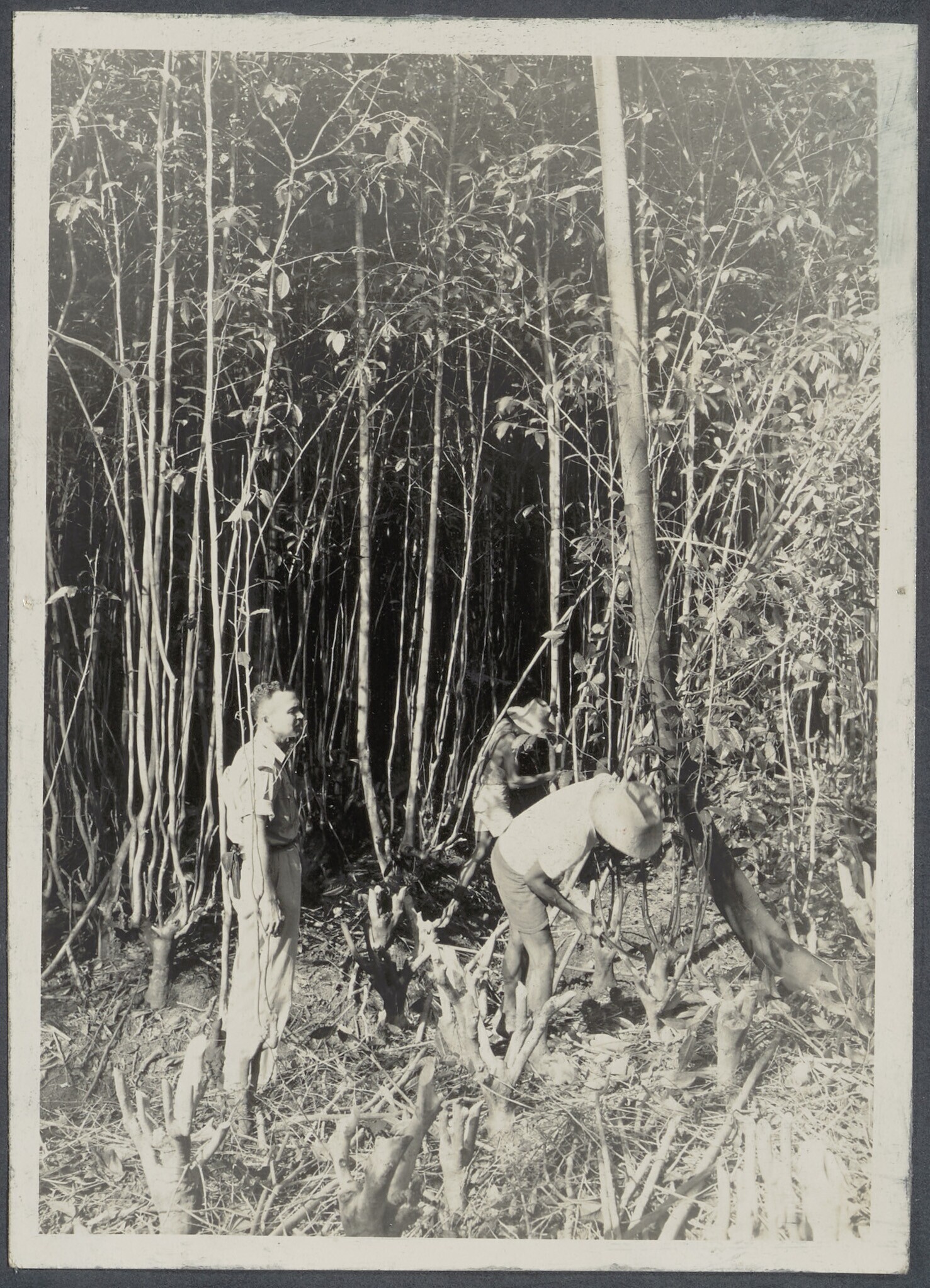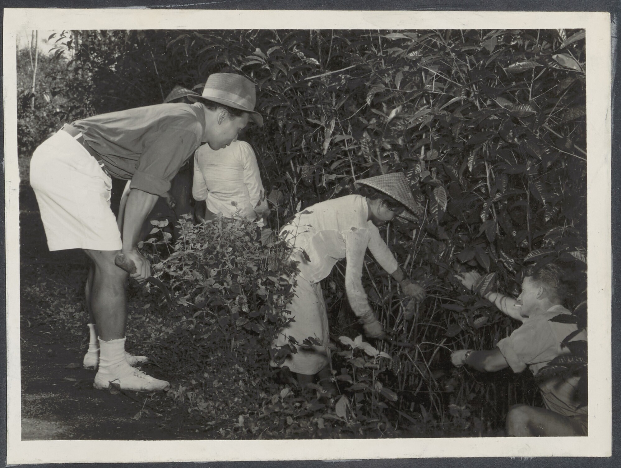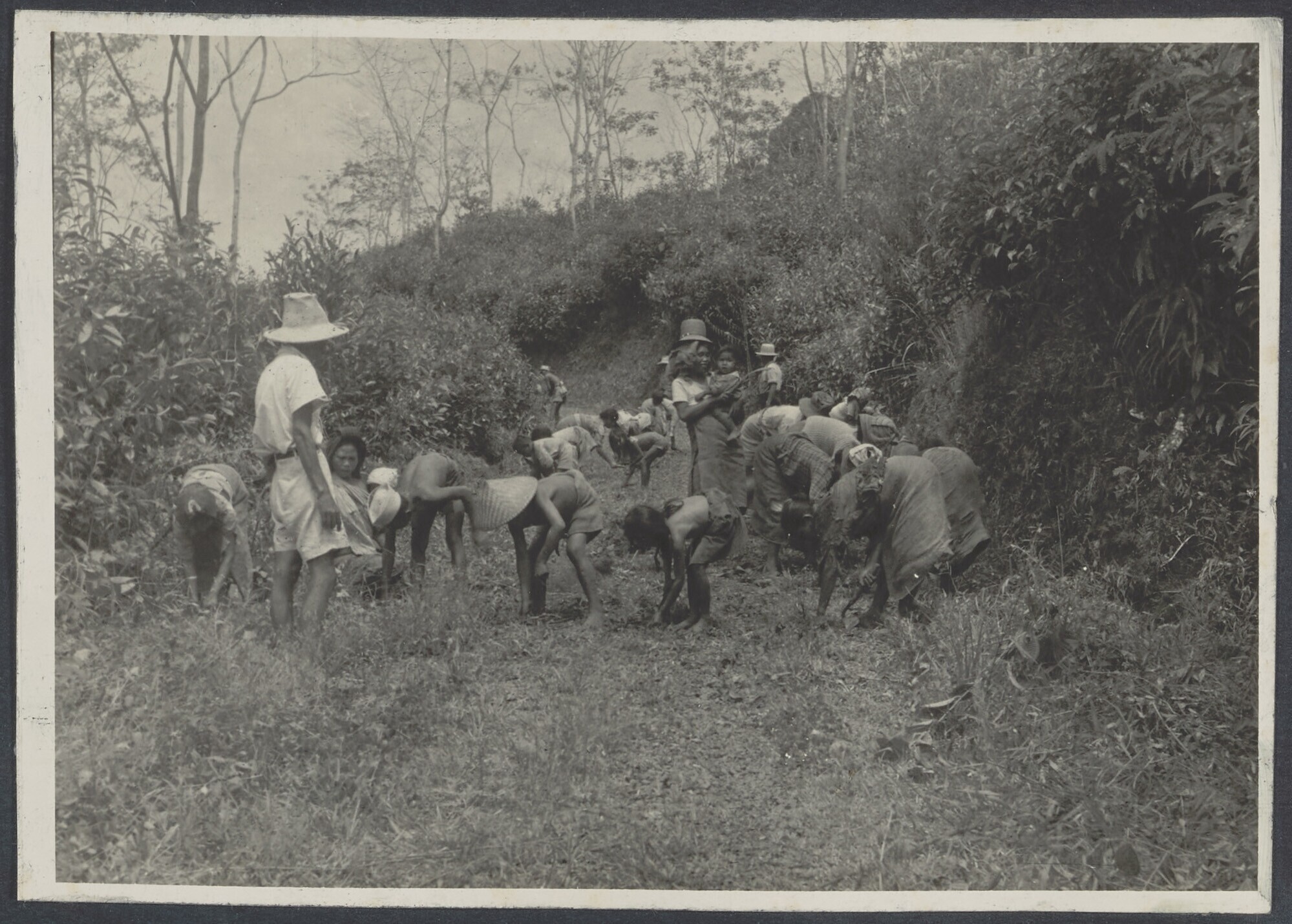 Theeplukkers krijgen snoei-uitleg van opzichters
