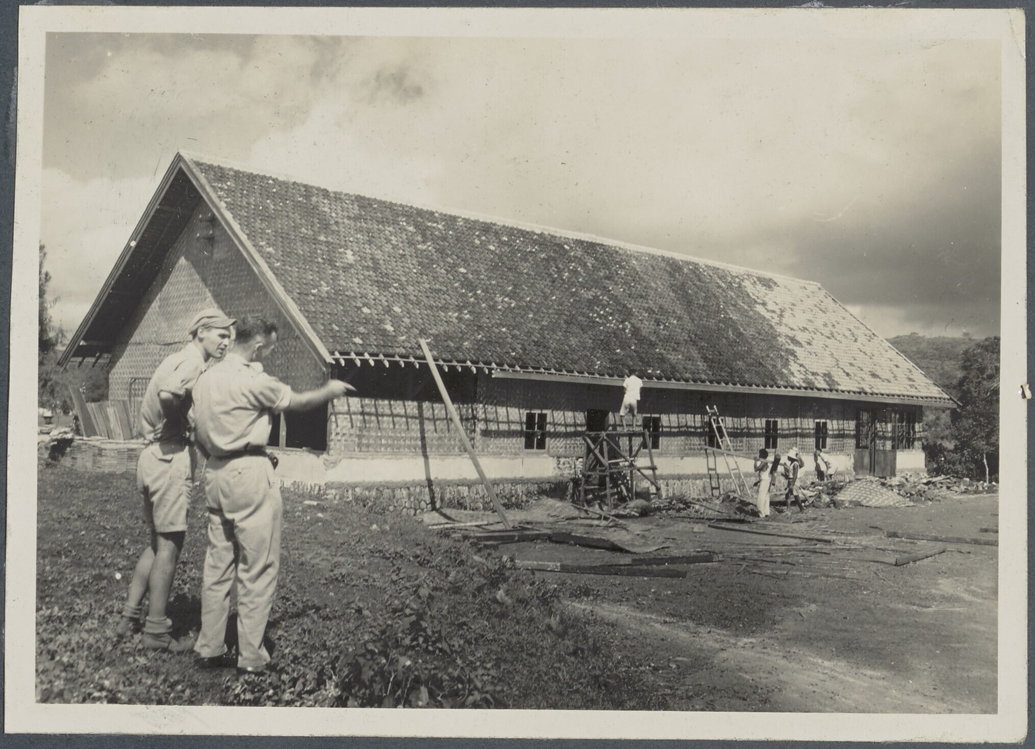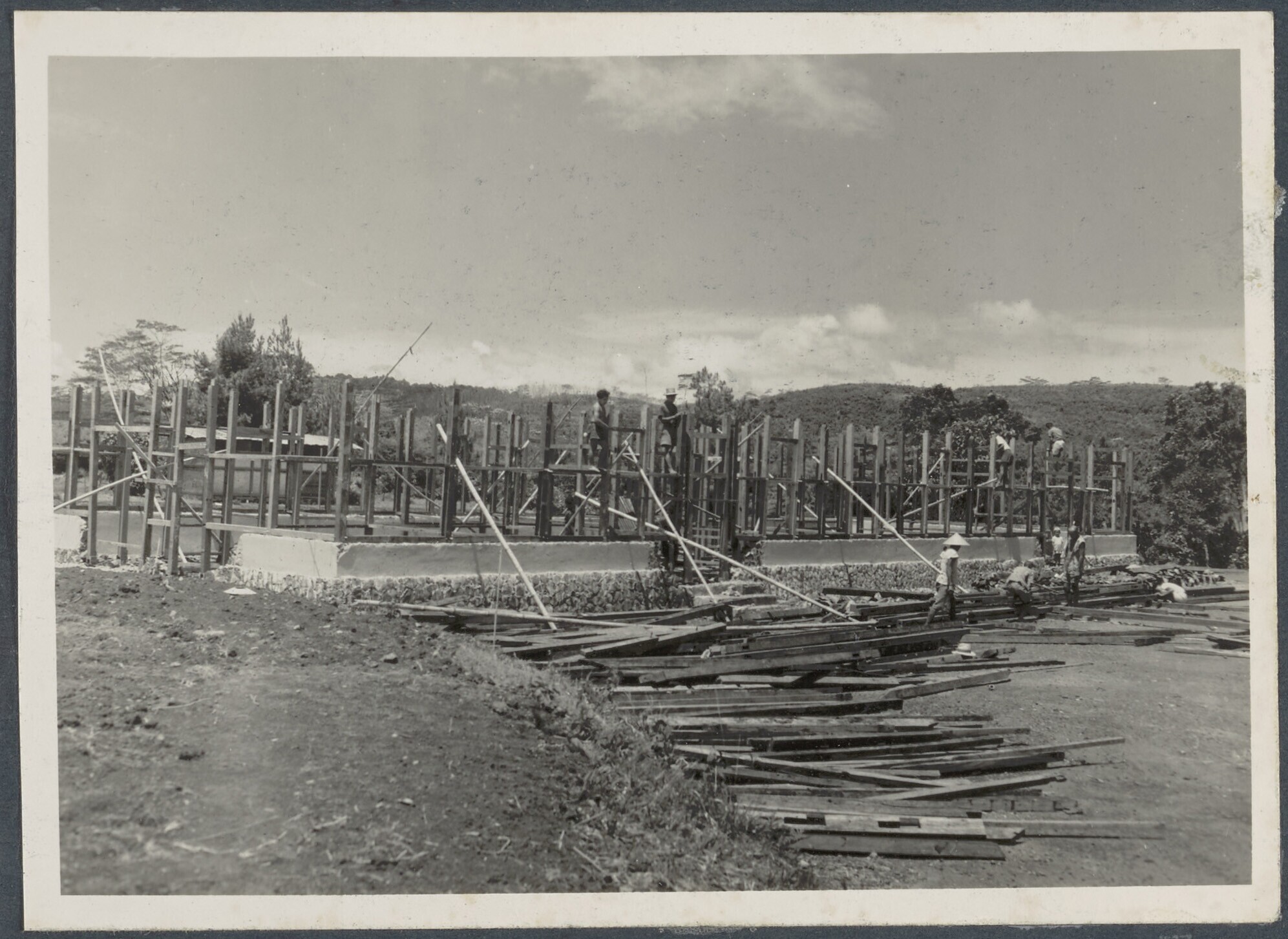 Arbeiders bouwen de kantine