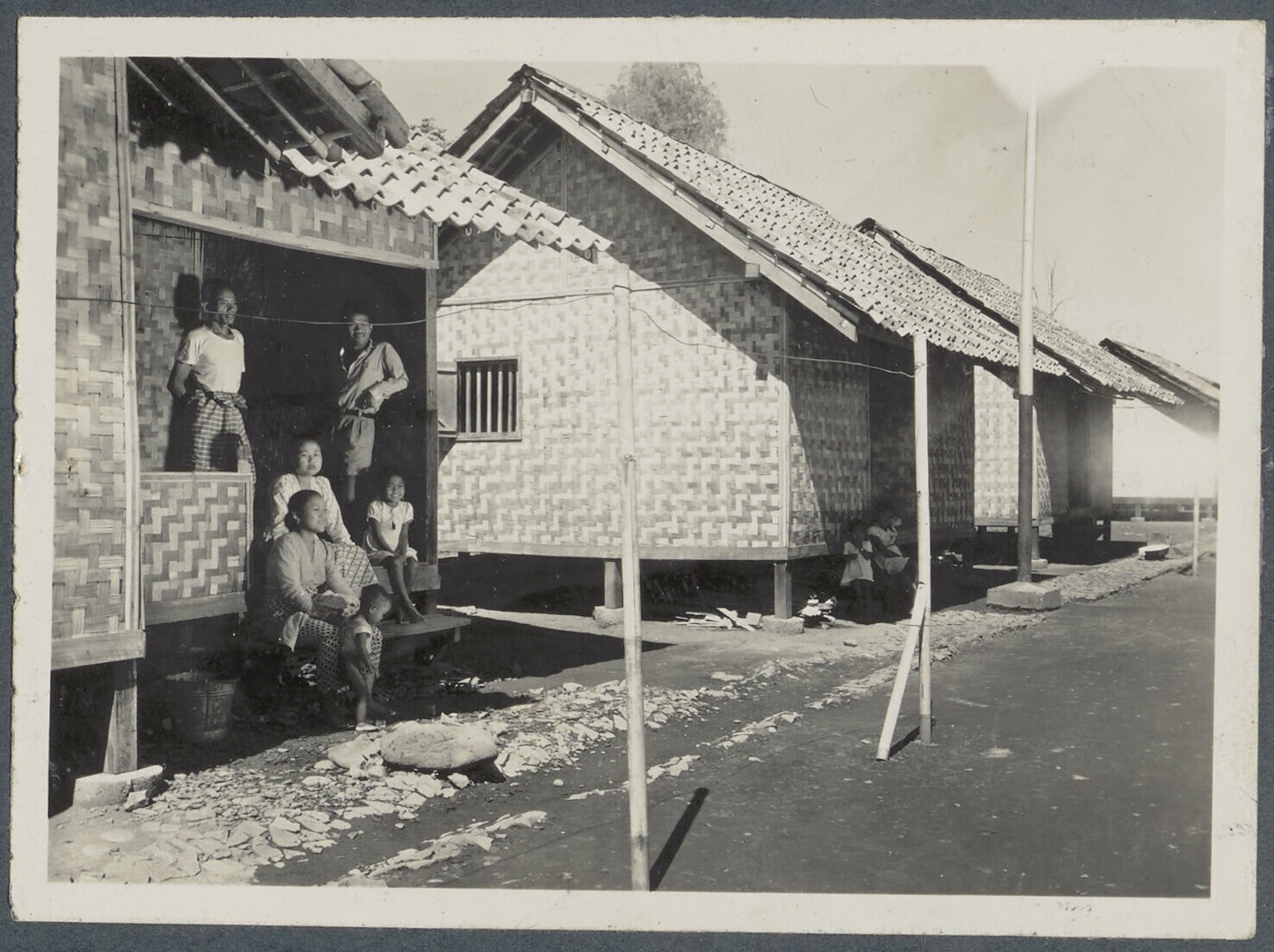 Javaans gezin zit op de veranda van hun woning