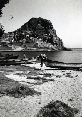 Boten op het droge, beladen, mannen, kinderen, heuve...