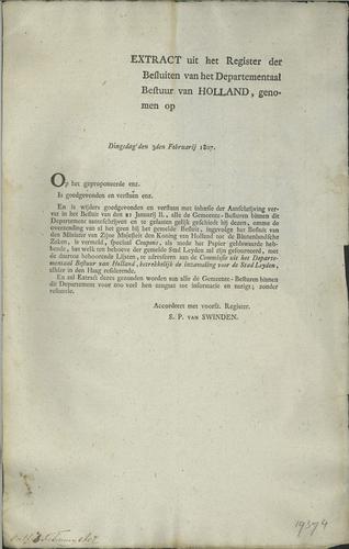Plakkaat verantwoording Ontvangers en Gaarders, 1807
