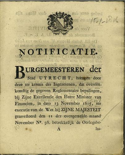 Plakkaat, oorlogsbelasting, 1816